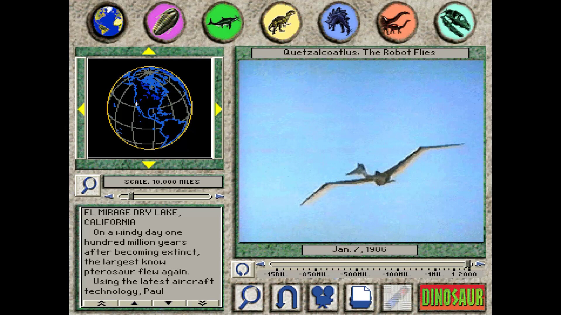 In 3D Dinosaur Adventure, players explore the Triassic, Jurassic, and Cretaceous periods and learn about Dinosaurs. They interact with a wide variety of dinosaurs including Apatosaurus, Tyrannosaurus, and Velociraptors.