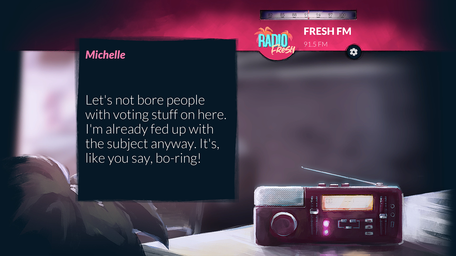 An audio mystery set in a time loop. Record, rewind time and broadcast snippets of radio shows to expose radio hosts, conspiracy theorists and politicians.