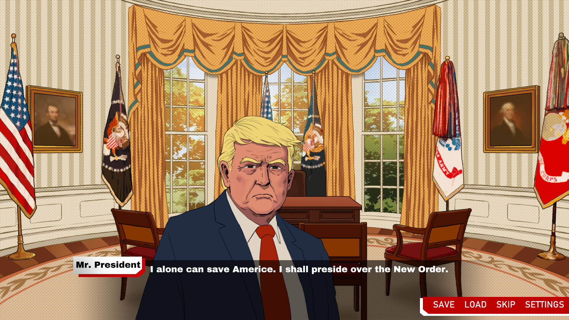 "Liberty has rotted; only a New Order can save Americe." you are the President. To end chaos, you follow the "advanced experience" from the peninsula. Reorganize the USA into the Democratic People's Republic of Americe (DPRA). Achieve the true MAGA!