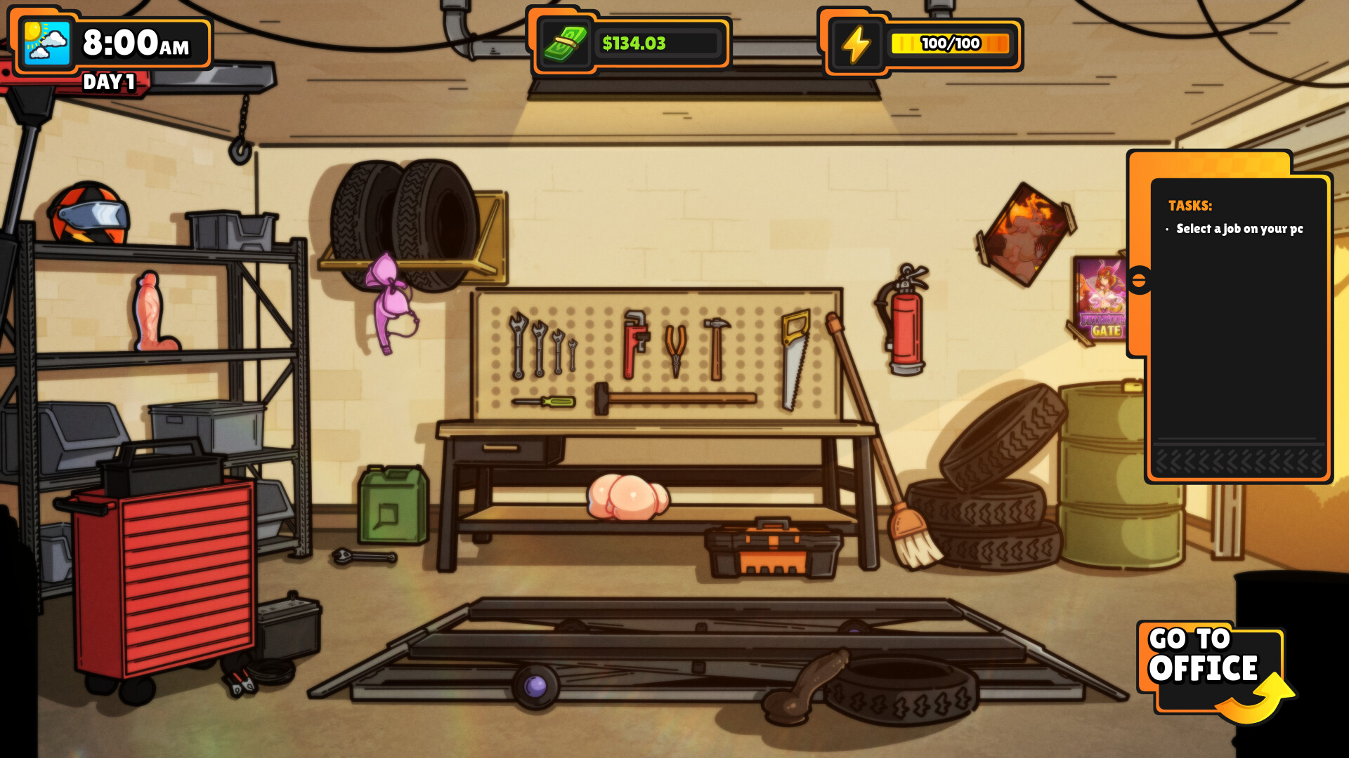 Ana’s Auto Fellatio is a hand-drawn 2D adult mechanic simulator and visual novel starring the futanari protagonist Ana. Manage a car repair shop, take on repair jobs, level up with perks, unlock random benefits, enjoy erotic CGs, and balance business, time, and self-pleasure in a sandbox experience.