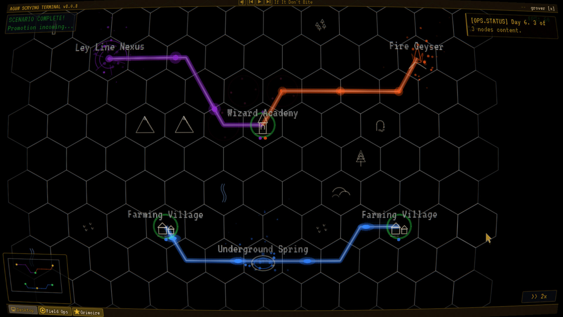 Route magical energy through a fantasy realm as a mid-level utilities employee. Connect ley lines, manage complaints, and keep the mana flowing in this comedic puzzle-strategy game set in a mundane, magickal world. The benefits are not great, but neither is the pay! So there's that.
