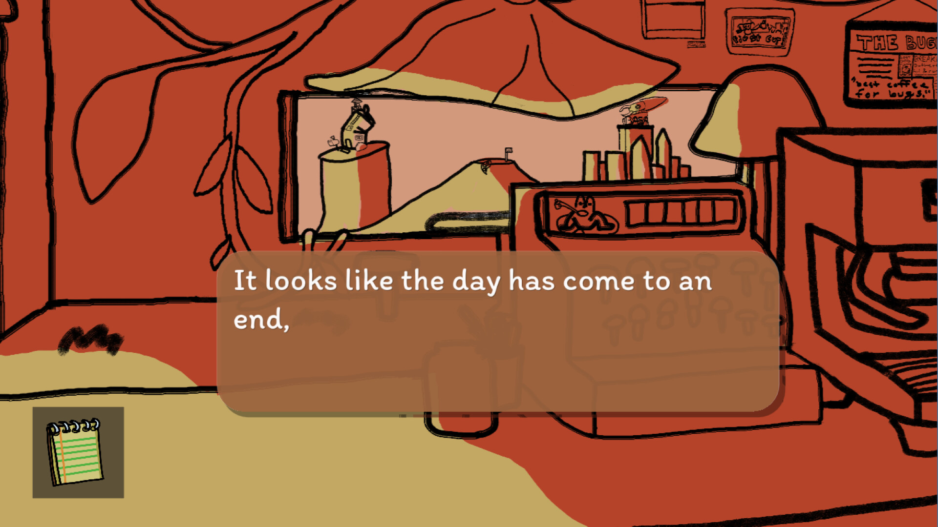 STORY: You are a Roly Poly who works at a coffee shop. you are saving money so that you can expand your business to space. Why? 1. Because capitalism 2. Shut up GAME MECHANICS: - buy upgrades like lavender syrup - make coffee in point and click adventure - Dialogue affects how high your tips are