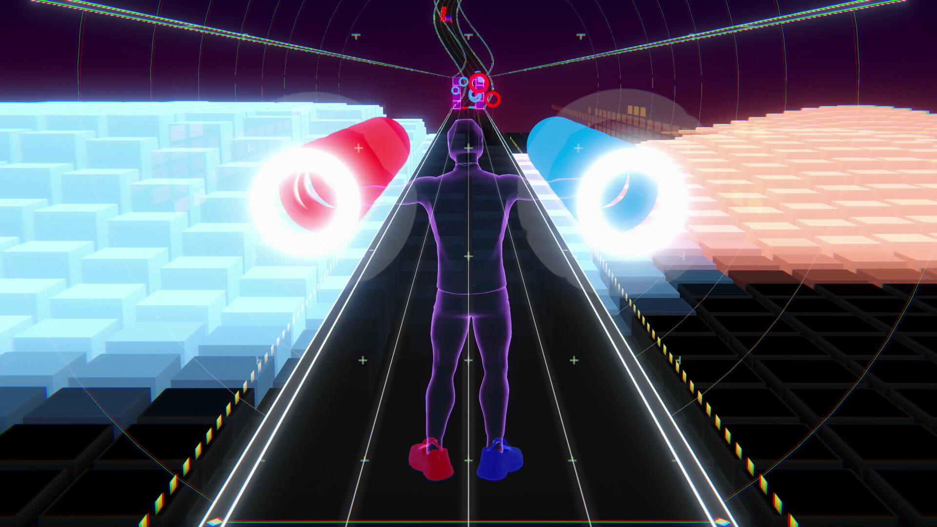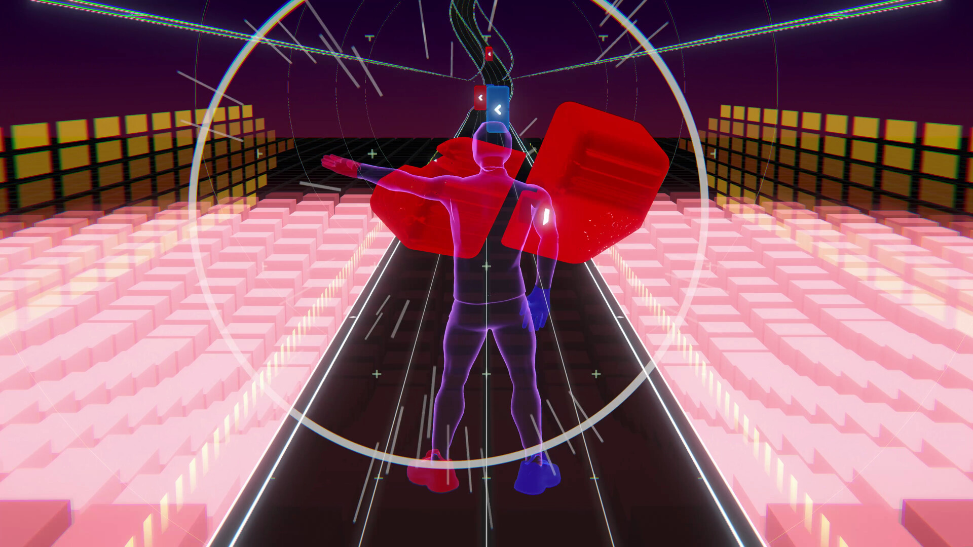 A full-body rhythm game — collect rings, cut blocks, dodge obstacles. No VR, no gamepad. Just a camera and your movement.