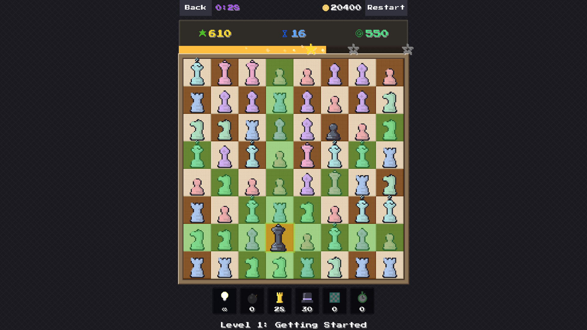 A pixel art puzzle game where chess meets match-3. Move pieces like a chess player, match them like a puzzle pro. Match 4 or more to forge special black pieces. Combine two specials for spectacular chain reactions. 100 handcrafted levels, timed Blitz mode, and endless Unlimited mode.