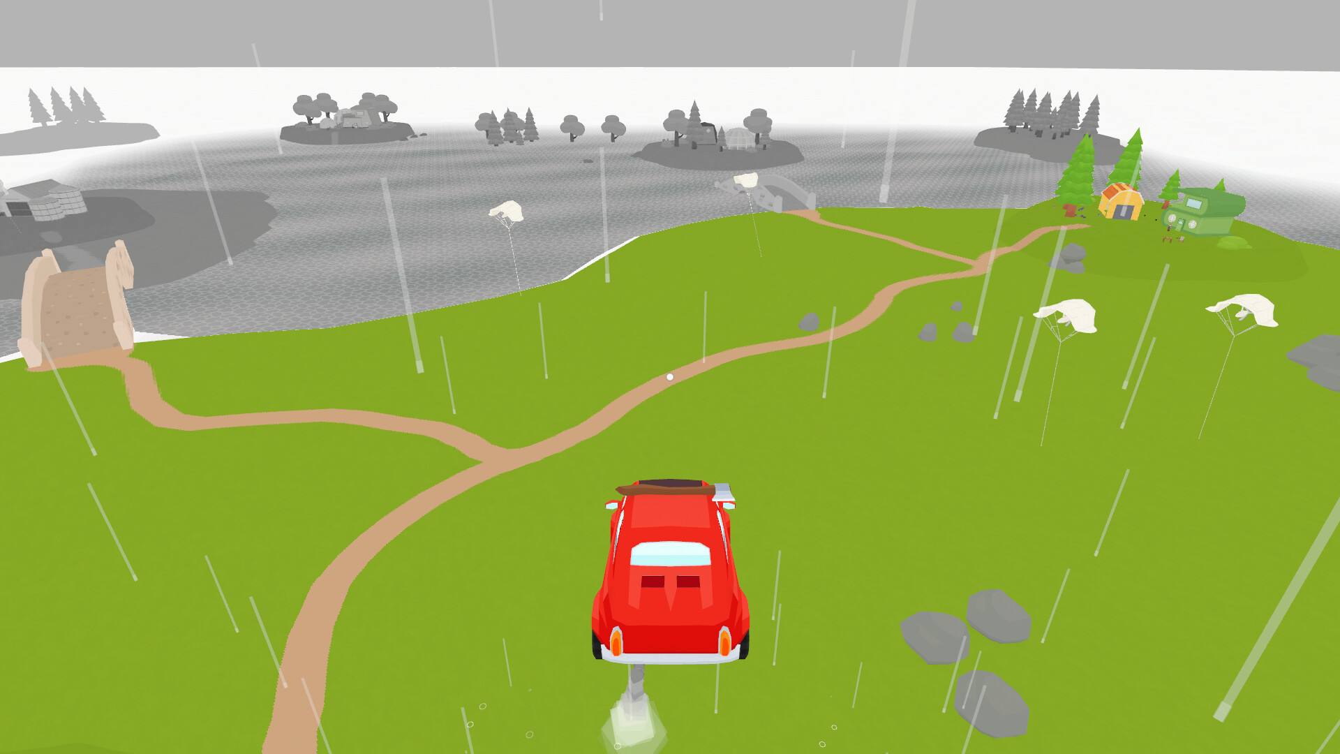 A cozy adventure where you fly around in a car and paint a grey world back to life — with the help of little monsters living in your trunk. Care for your monsters, harvest pigments, brew colors, and bring the outside world back to life — helping its residents find their way back to each other.