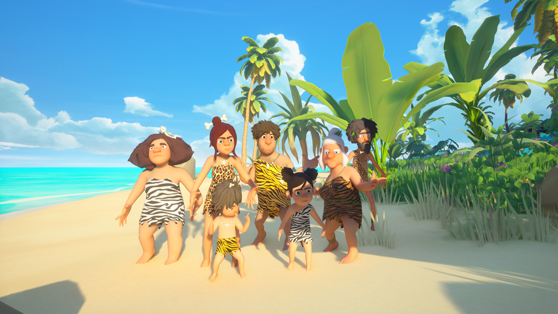 Become a caveman, survive by building, fishing, and hunting.