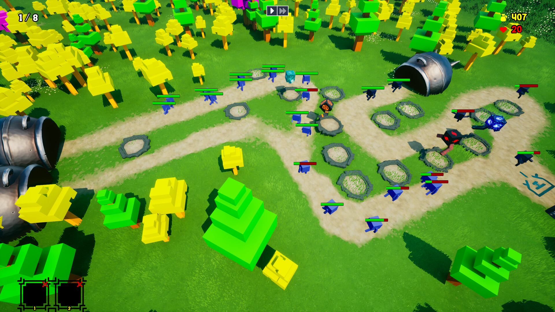 The cubes have lost their minds and become a force of chaos. Can you restore their consciousness? Build your towers, strategize, and defend the light of free thought!