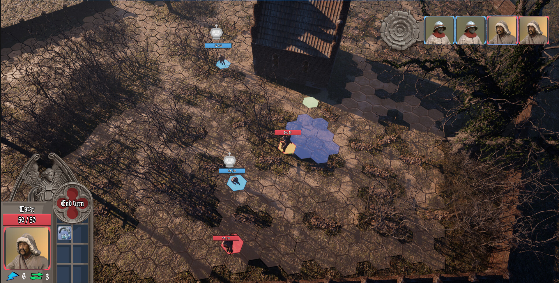 1454 is a turn-based tactical game set in 15th-century Prussia. Lead a desperate band of outcasts — peasants, fugitives, the forgotten — through brutal skirmishes shaped by terrain, supply, and survival. A tabletop wargame reborn for history lovers and fans of raw, grounded strategy.