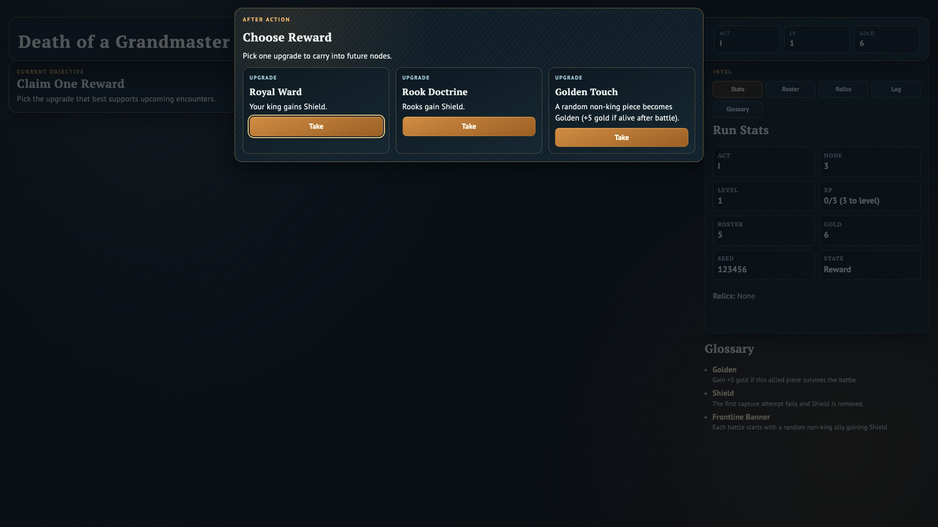 A tactical chess roguelike where you build a custom board, survive escalating combats, and break enemy kings with powerful relic and piece synergies.