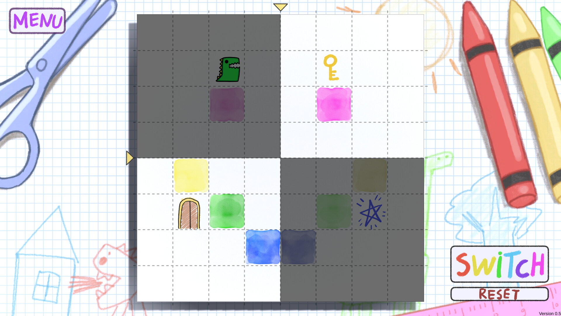 A dinosaur trapped in a paper world. Use decalcomania to duplicate tiles, build a path, and escape!