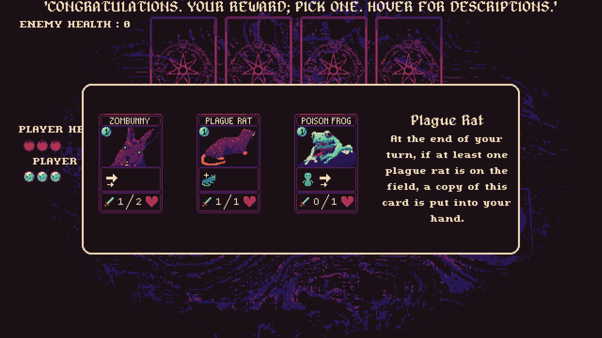 In this necromantic lane-based deck building RPG; Capture the essence of deceased beasts, resurrect and command them in strategic card combat against various other zombie animals, and wrestle with the secrets of death itself.
