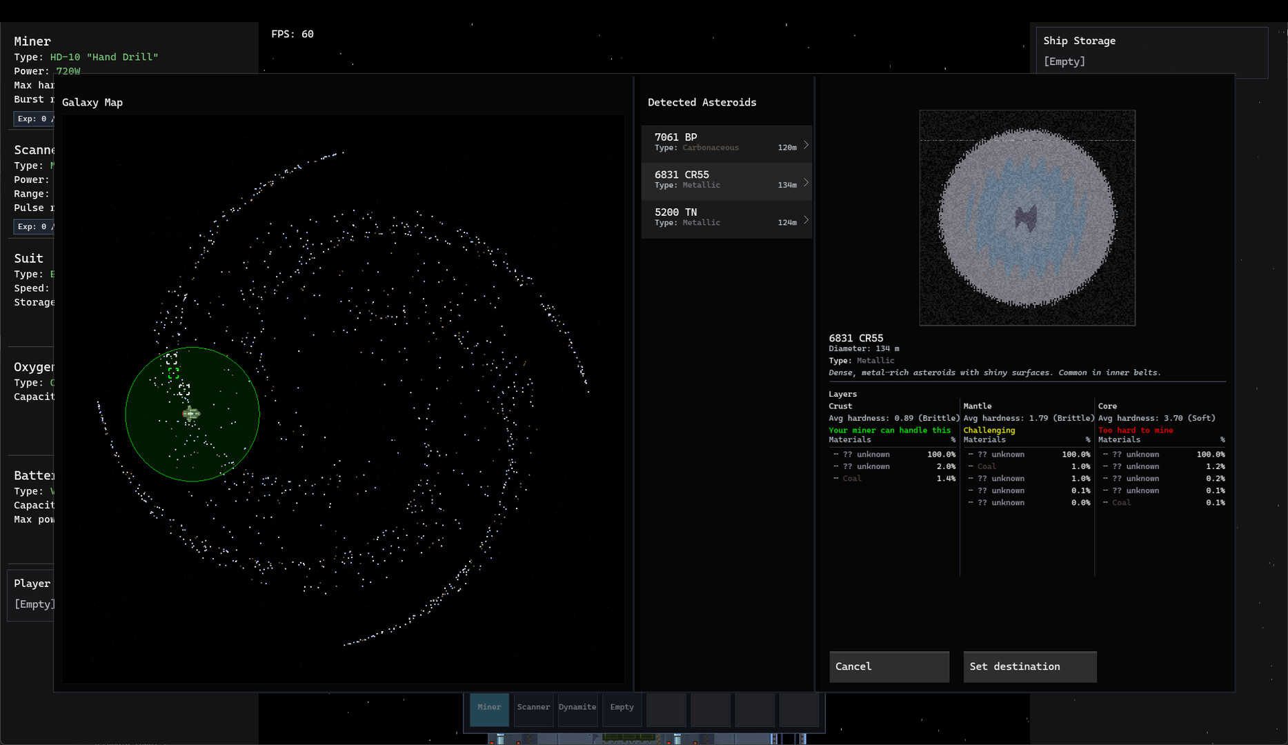Deep Claims is a space exploration game where you upgrade your ship and equipment in order to mine increasingly valuable and hazardous asteroids.