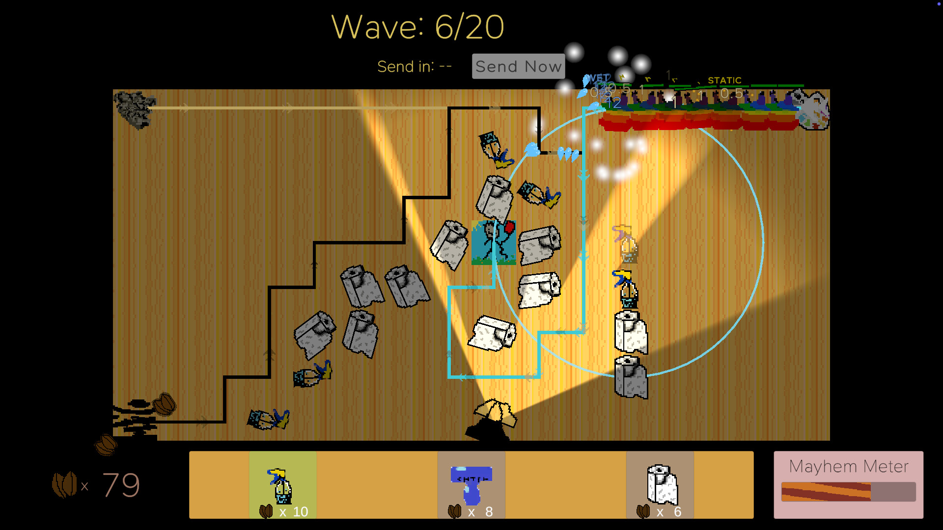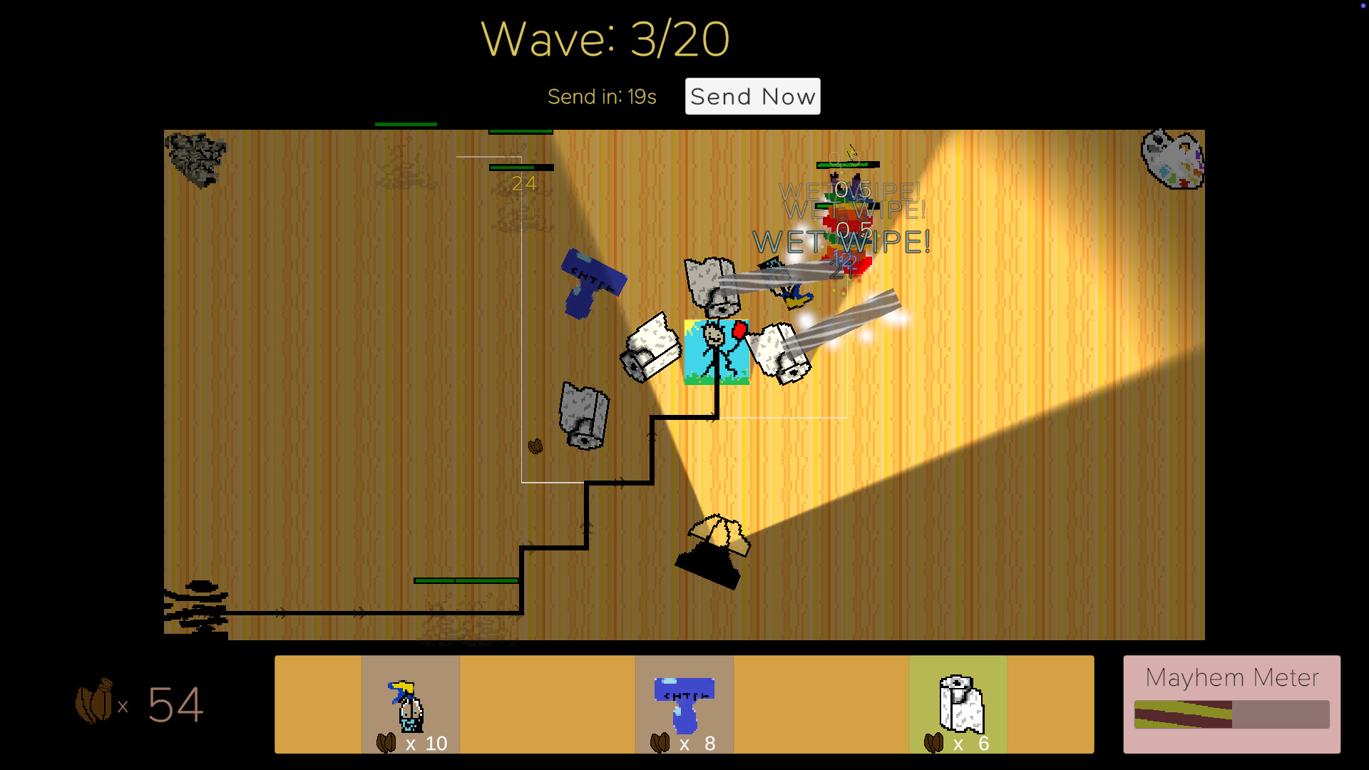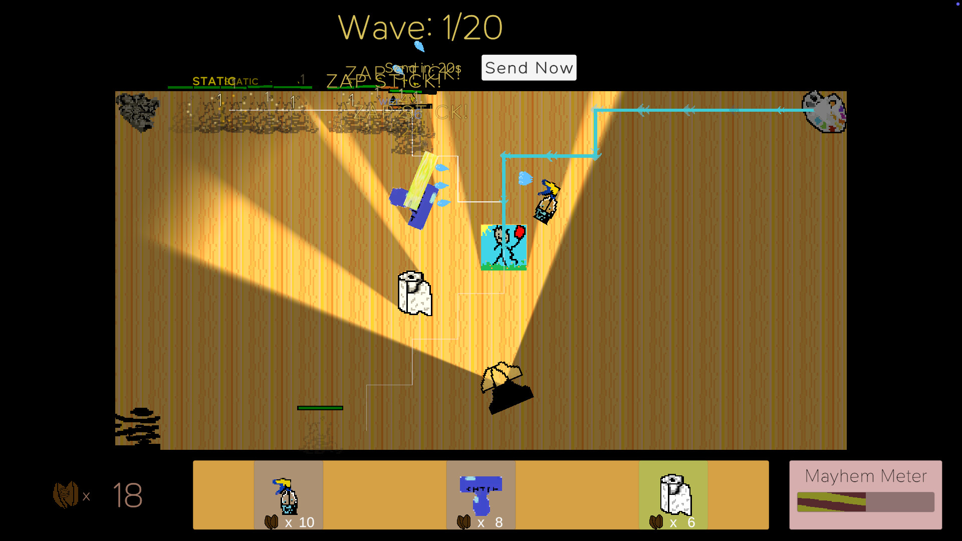 A cozy-chaotic tower defense game where you place cleaning towers to block, reroute, and combo through desk messes. ILLUMINATE, WET WIPE, and ZAP STICK your way to control, or face CAT MAYHEM!