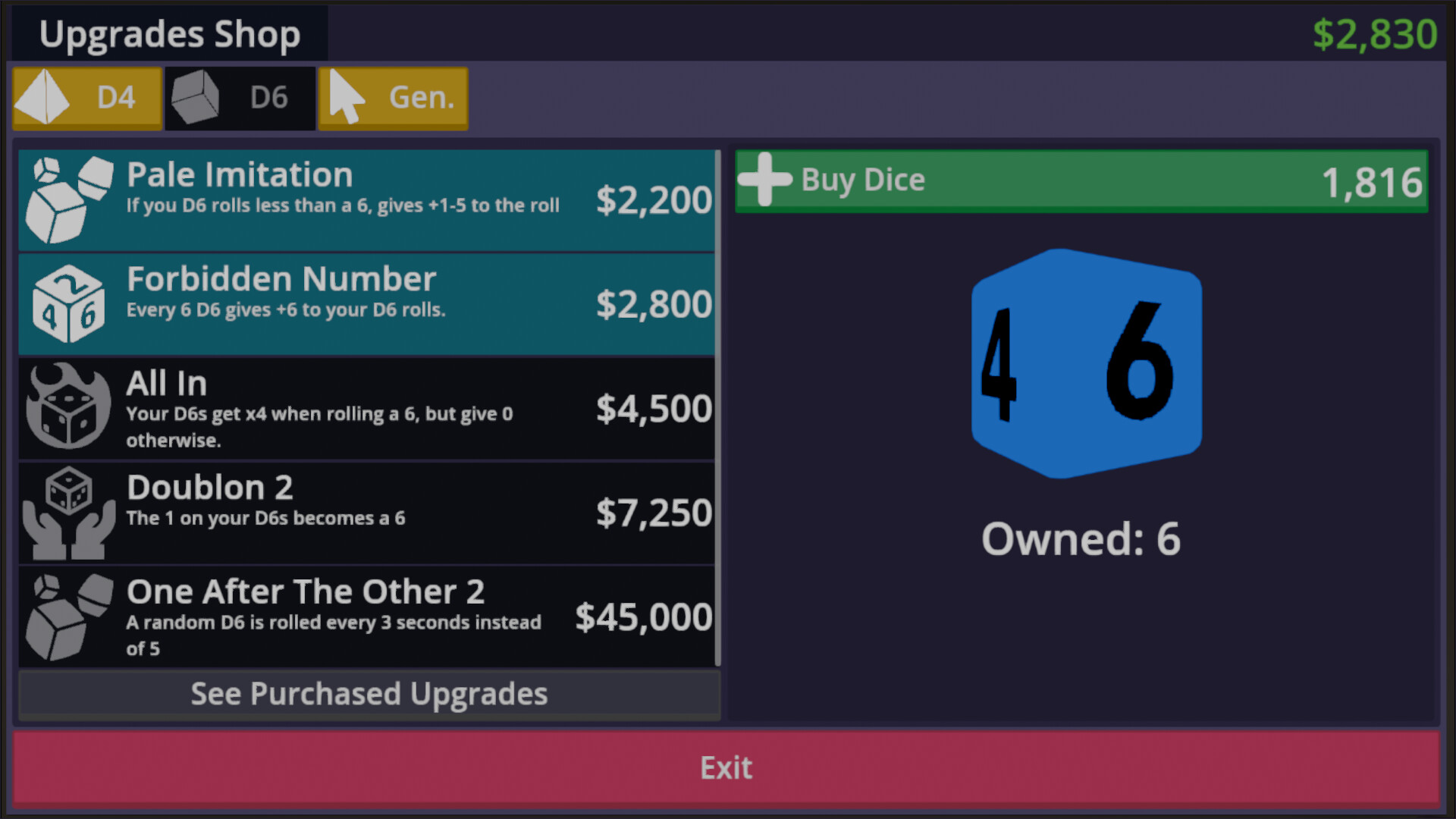 Roll your dice, upgrade them, buy more dice! Dice Roller Incremental is a game where each dice roll earns you money, which you then spend on improving your dice rolls.