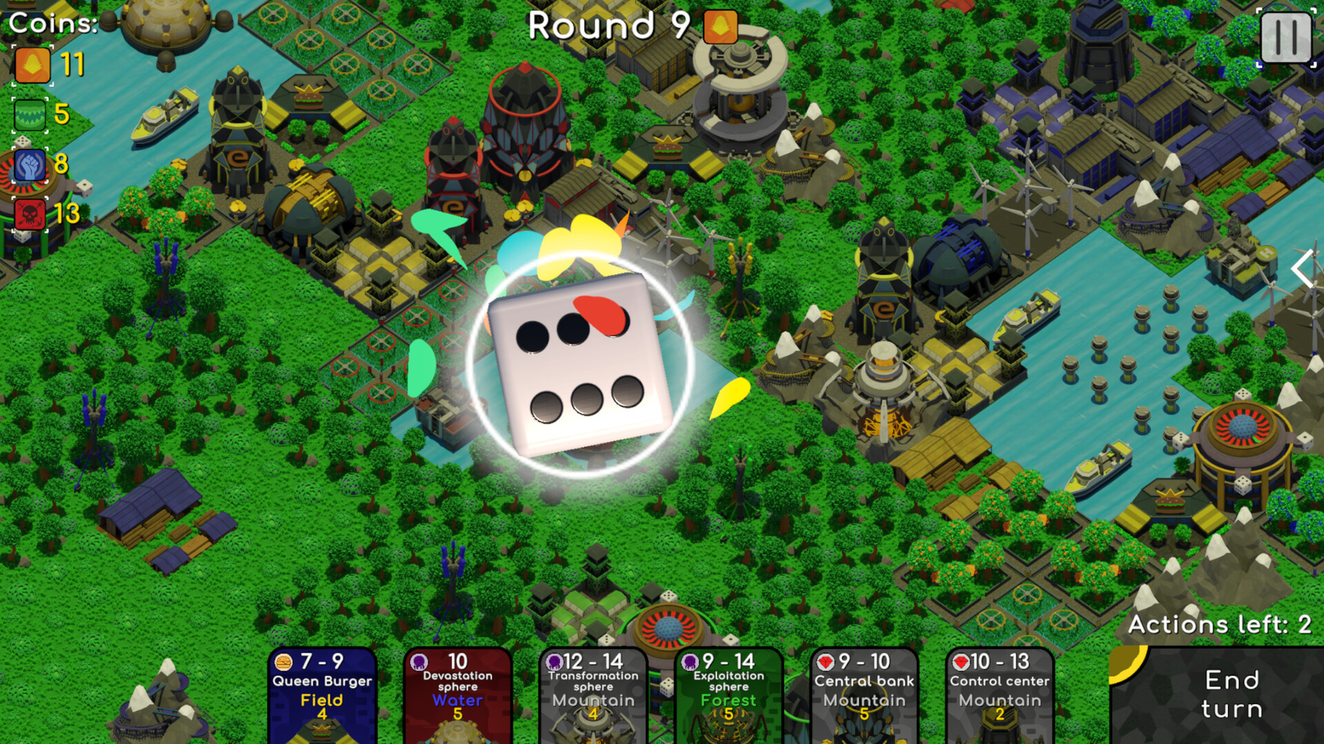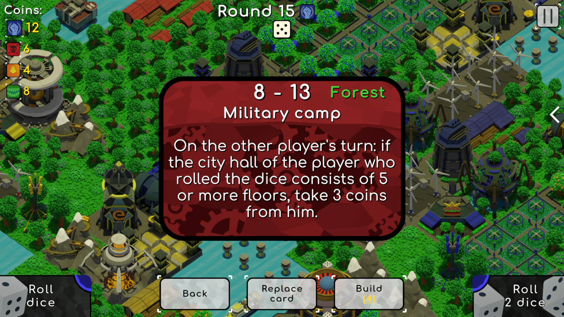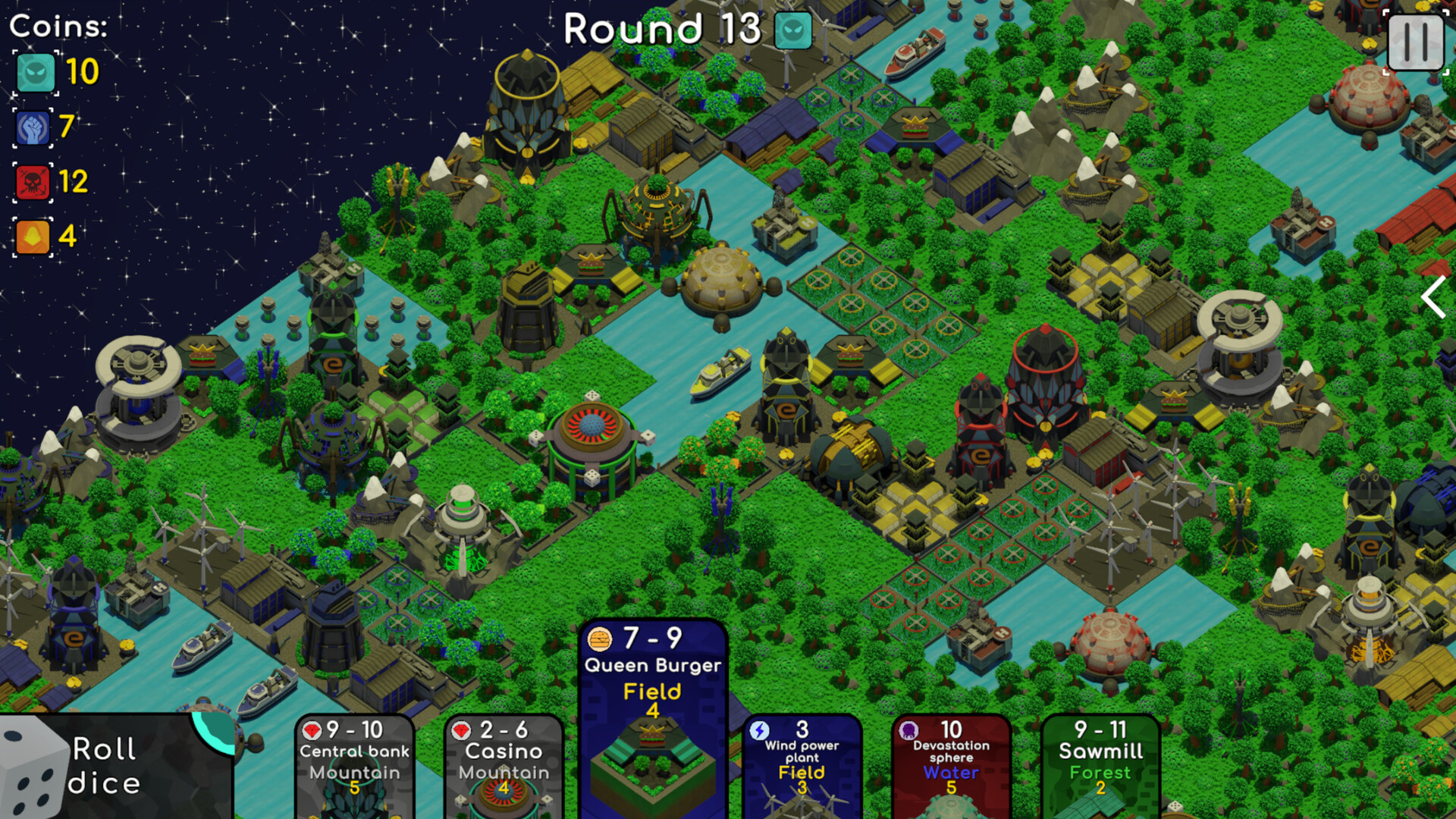 Build your city, roll the dice, and outplay your rivals in Diceville — a card-based strategy game inspired by tabletop classics. Trigger building effects, upgrade your city hall, and race to victory in a game of luck, planning, and clever combos.