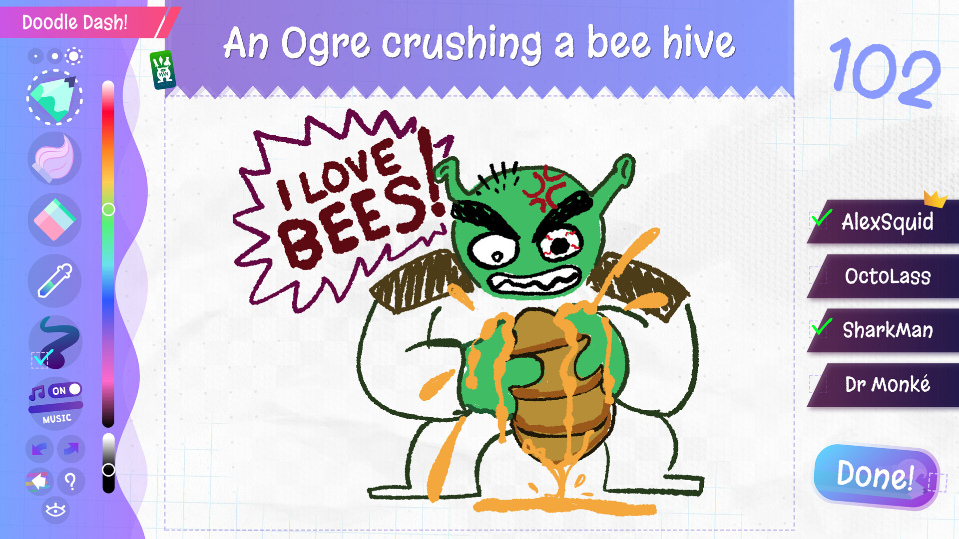 The ultimate arty-party drawing experience! Choose from a mix of endlessly replayable party games made for artists and doodlers, or just hang out n' draw together on a shared online canvas. Doodle Champs is optimized & designed for play with pen-pressure tablets, but mouse-wielders are welcome too.