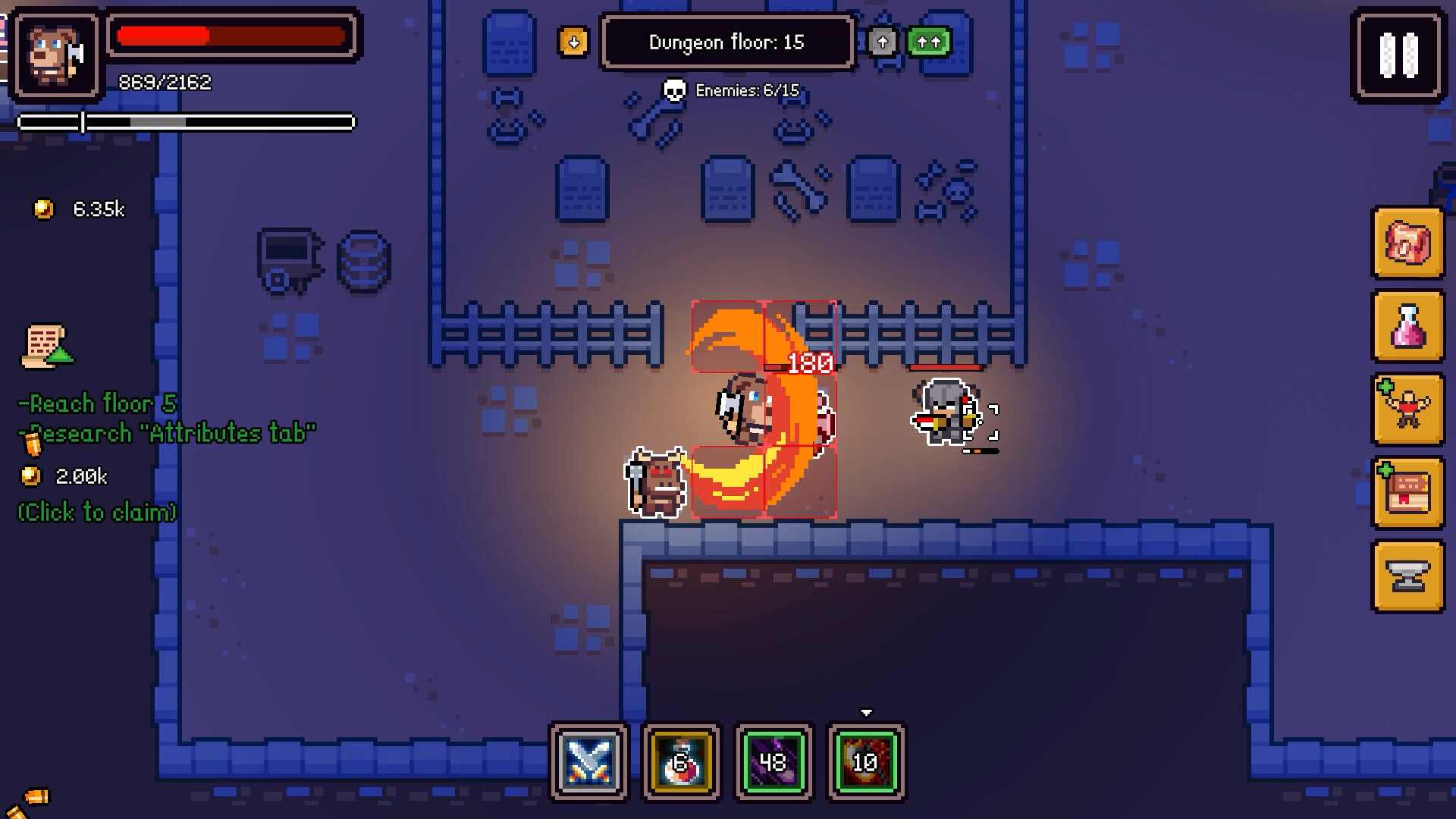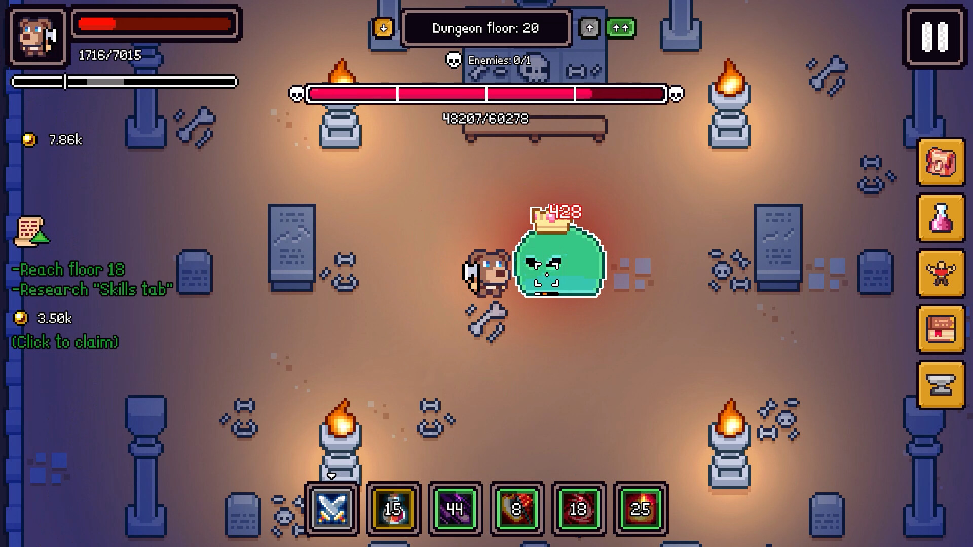 A pixel art idle dungeon crawler where you fight automatically, gather loot, upgrade gear, and unlock new attributes and skills to progress deeper into the dungeon.