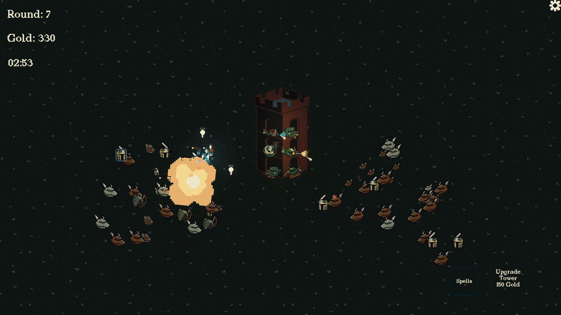 A roguelike tower defense where you manage a single tower. Build your tower blocks to fend of waves of enemies. Enemies will adapt to your build, so don't be afraid to explode and rebuild!