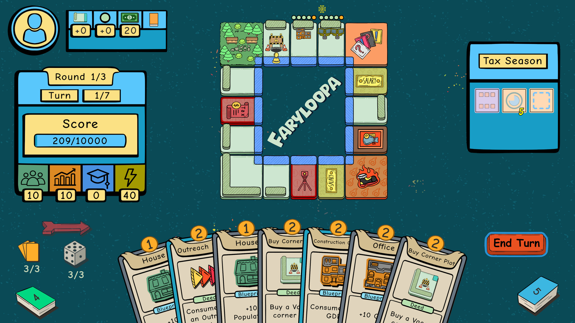 Build the board. Play the cards. Roll the dice. Faryloopa is a roguelike deckbuilder meets boardbuilder where every run is a new layout, new synergies, and bigger scores to chase.