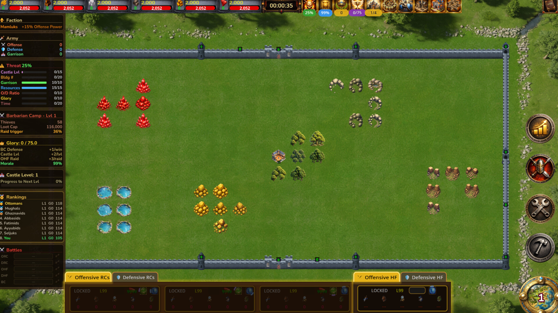 Build your castle, grow your economy, and raise a mighty army in this medieval strategy game. Manage resources, train Mamluk warriors, raid enemy camps, and defend against barbarian attacks. Can you amass enough glory to conquer the Horde Fortress?