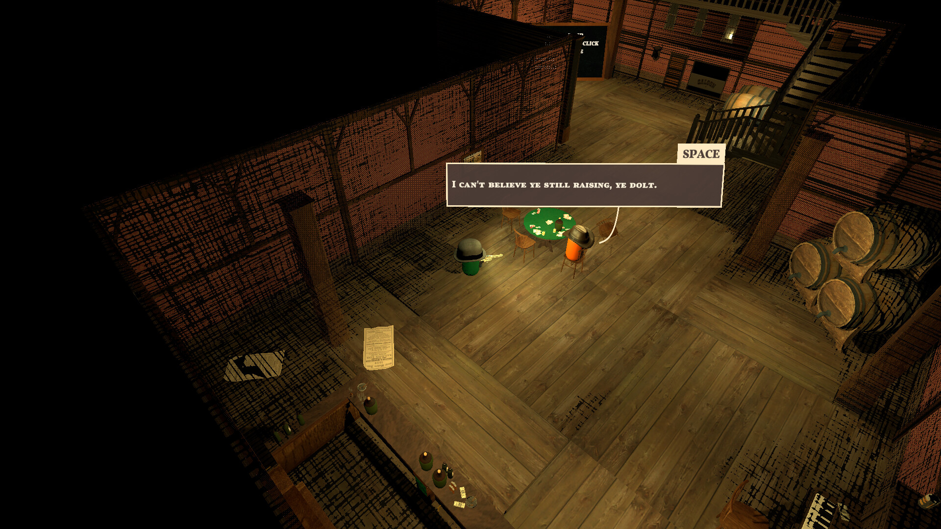 An isometric action roguelike with light deck building mechanics, set in a high-stakes western casino. Fight your way through rooms of cunning enemies, using strategic card play to escape the gamblers fallacy.