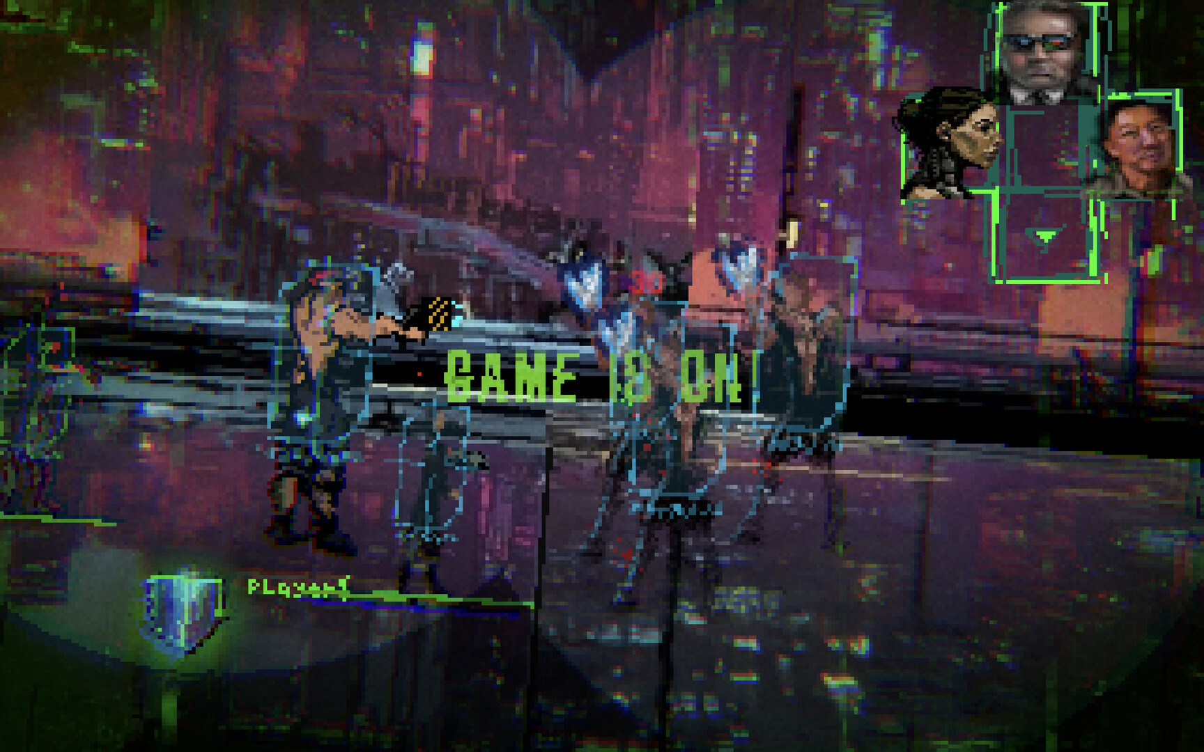 Sidescrolling shoot n loot in a cyberpunk dystopia. Control 4 cyber punks, loot loads of weapons, armor, and equipment, and start blasting away at the bad guys. Find your perfect mix of ranged/melee weapons, or a cyberdeck to execute subroutines on friends and foes. Find your own crazy symbioses.