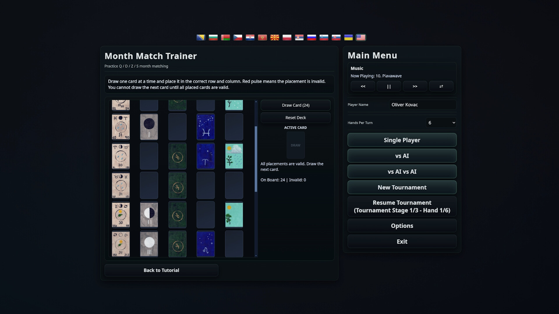 Godisnje is a turn-based strategy card game where players match Month cards with trait-based sets across multiple boards, manipulate seasonal effects, and outscore AI opponents through in-depth tactical play.
