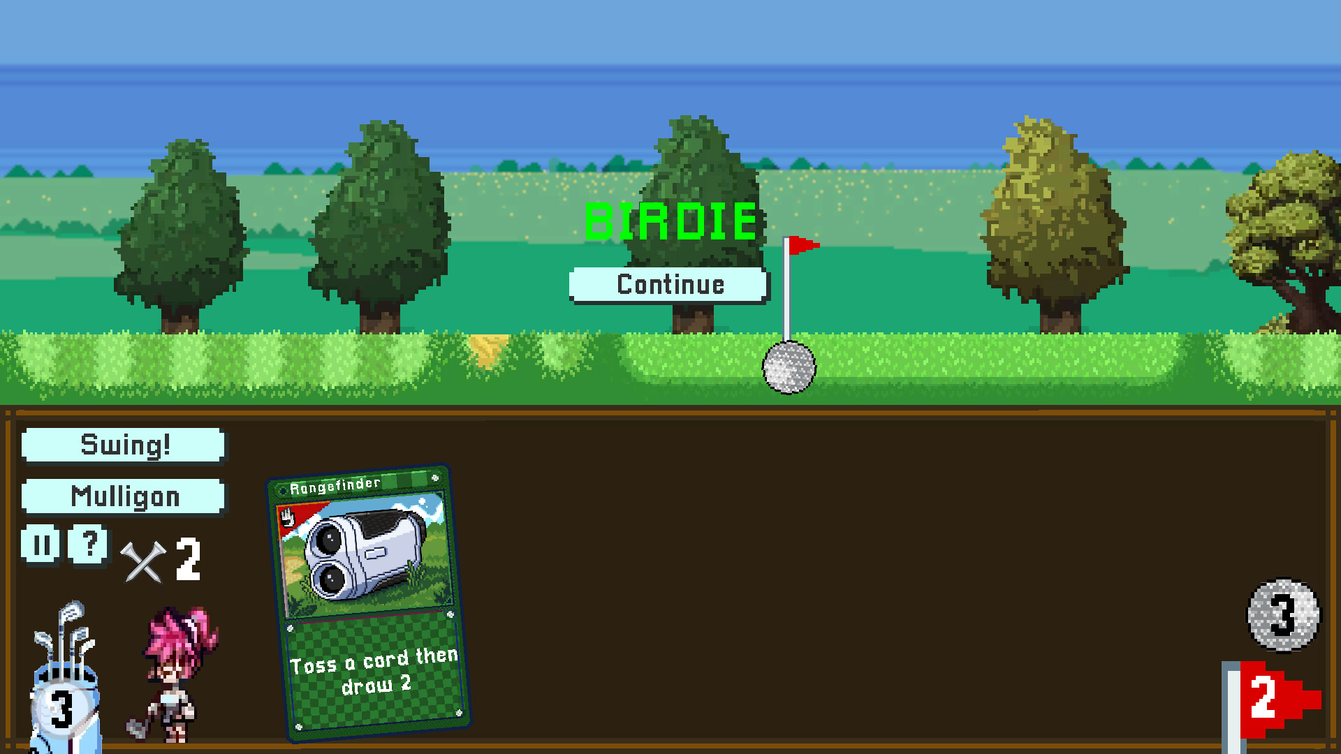 Golf 2 harnesses all the classic elements of golf into a unique deckbuilder roguelike. Play through randomized courses while collecting a golf bag full of powerful cards. Craft synergies within your deck to beat your rival's score.