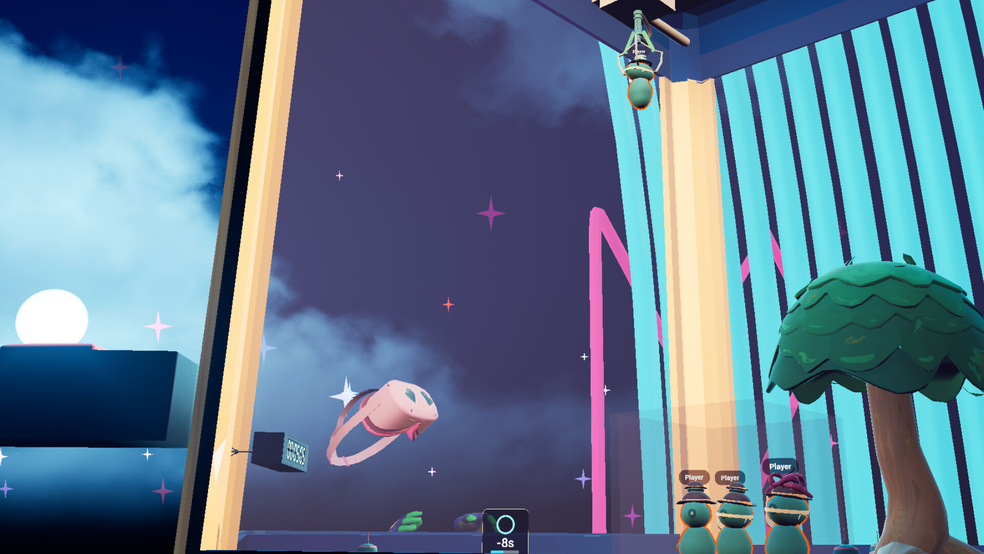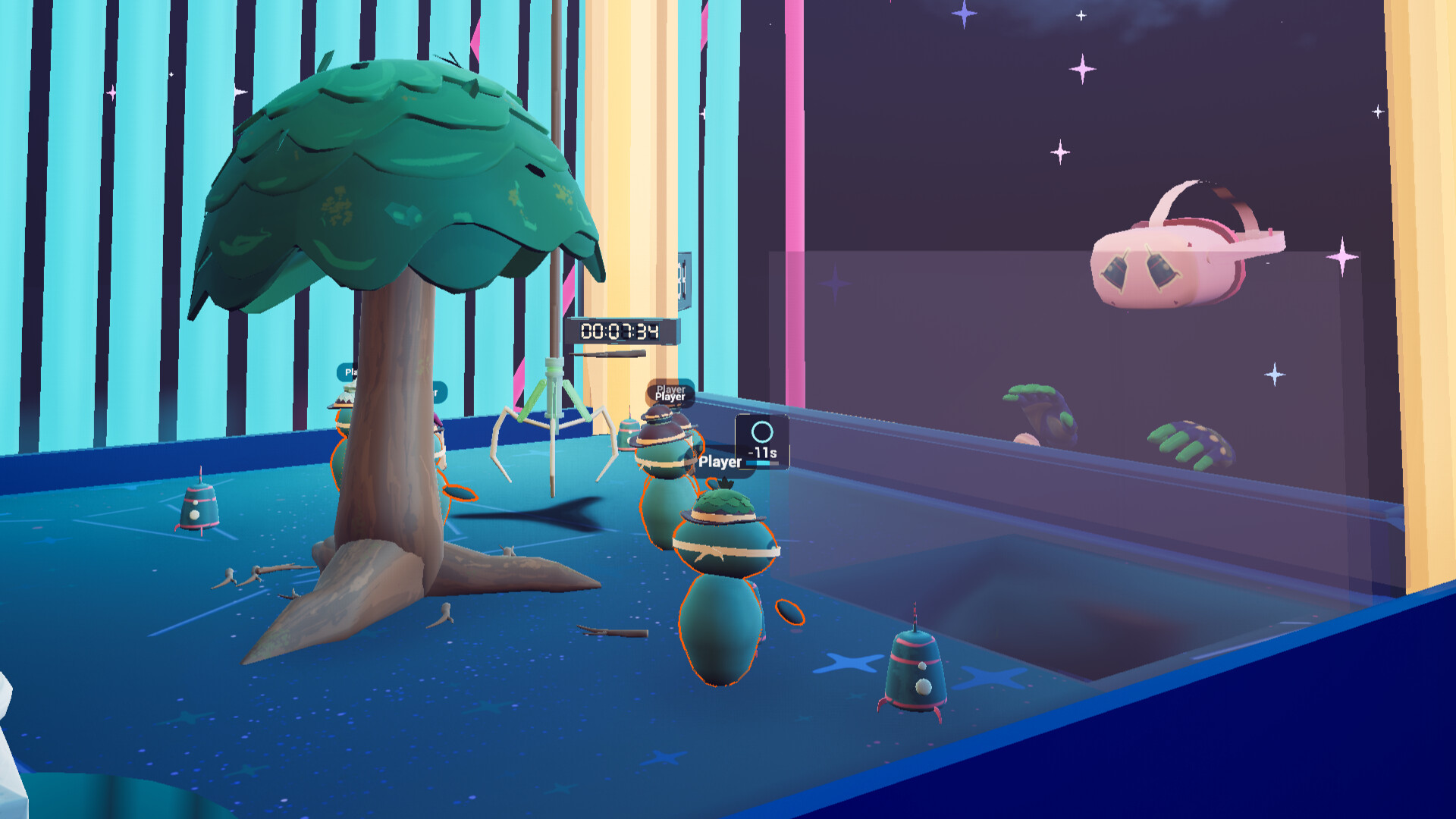 In local multiplayer Grab Your Friends, one player in VR controls the claw of a claw machine, while friends on their phones run, hide, and cause chaos inside using special hats. Short, exciting rounds—perfect for any game night.