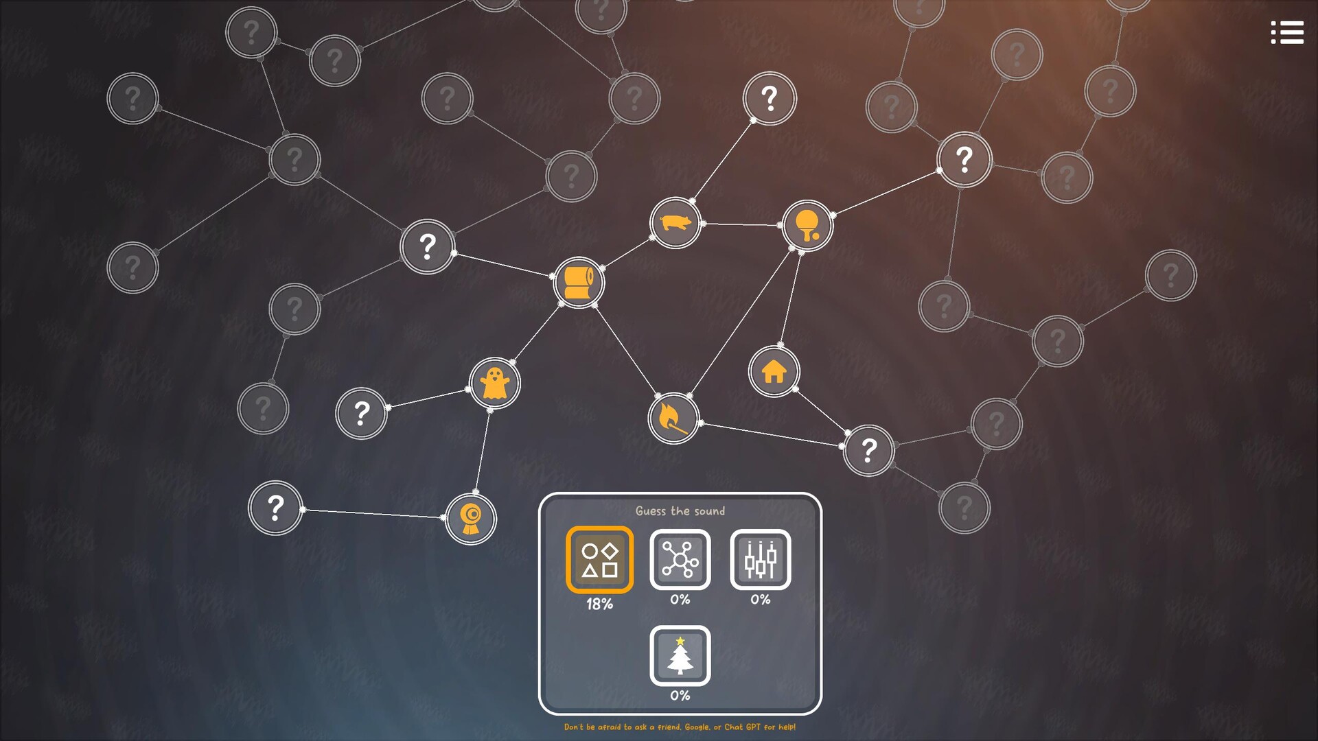 Guess The Sound is a relaxing sound-based puzzle game where you type an answer to a question based on what you heard. Handcrafted levels, logic-driven challenges, and clever hints triggered by wrong answers in a unique game of listening and reasoning for casual players and puzzle lovers alike. 🧠🎵