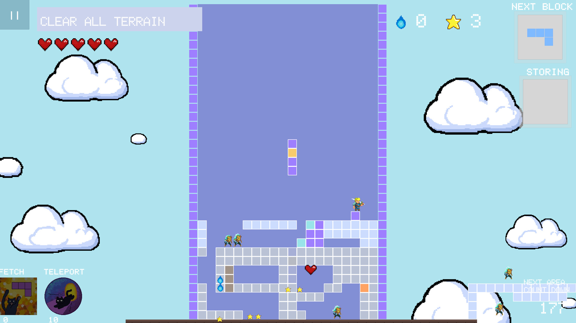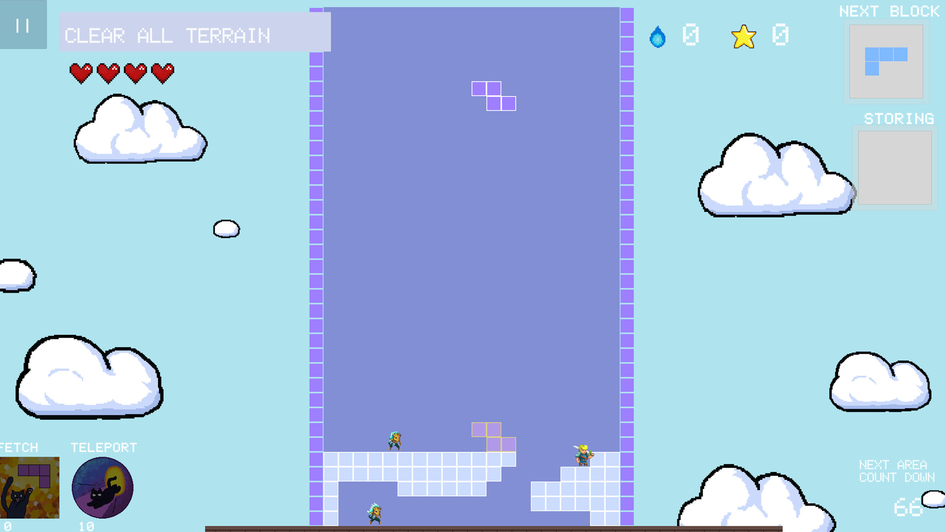 Held By the Sky is a 2D-platformer where players can roam within a grid-based terrain while simultaneously dealing with falling blocks. This game features experimental mechanics that combine genres to create a new experience.