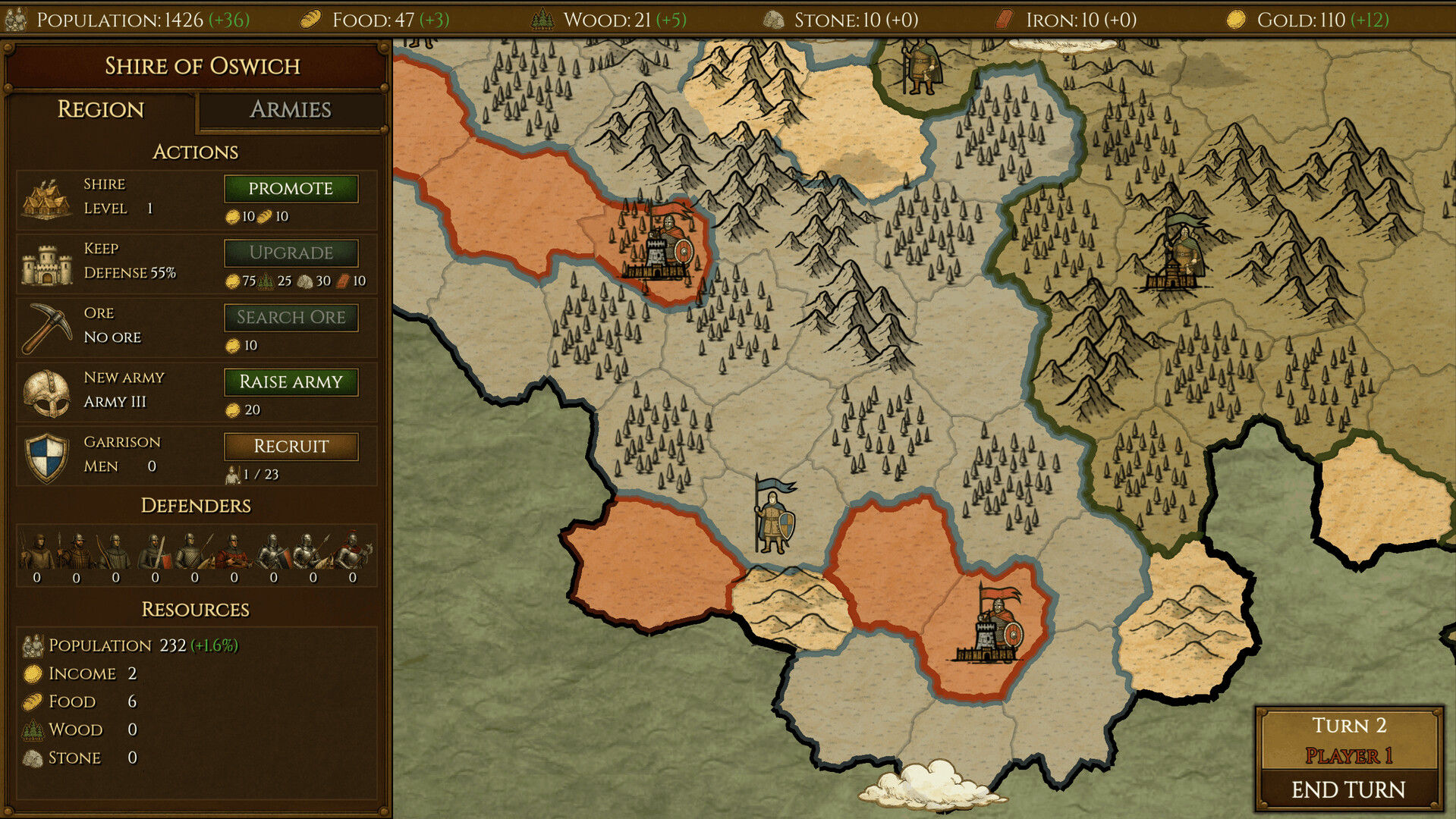 A turn-based grand strategy game focused on ruthless conquest and clever planning. Command armies, conquer procedurally generated regions, manage resources, and outthink rival warlords through smart timing, army composition, and siege tactics.