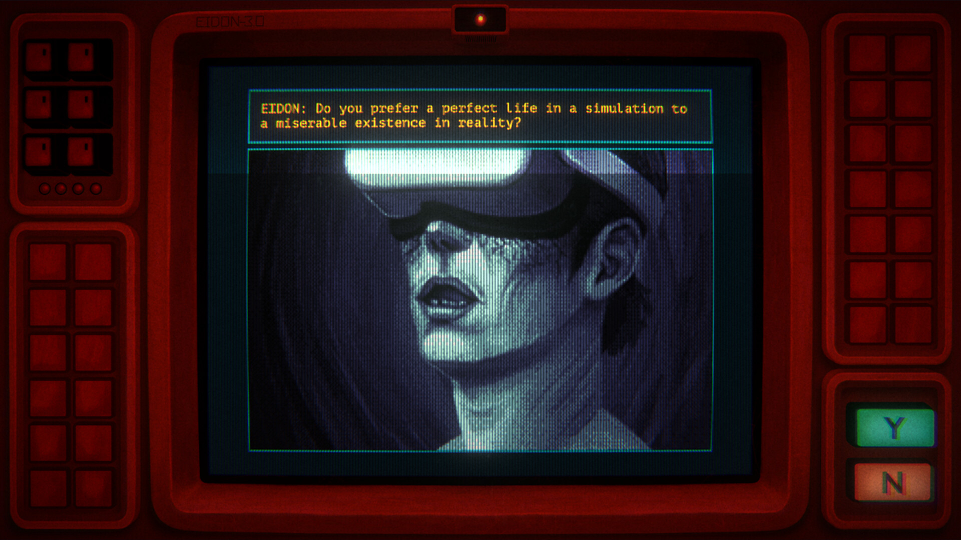 An AI has isolated the mind of a philosophy professor to evaluate human morality. Interface with the terminal, type system commands, and channel his responses through impossible ethical dilemmas. Your principles are on trial as every choice is recorded to determine your final profile.