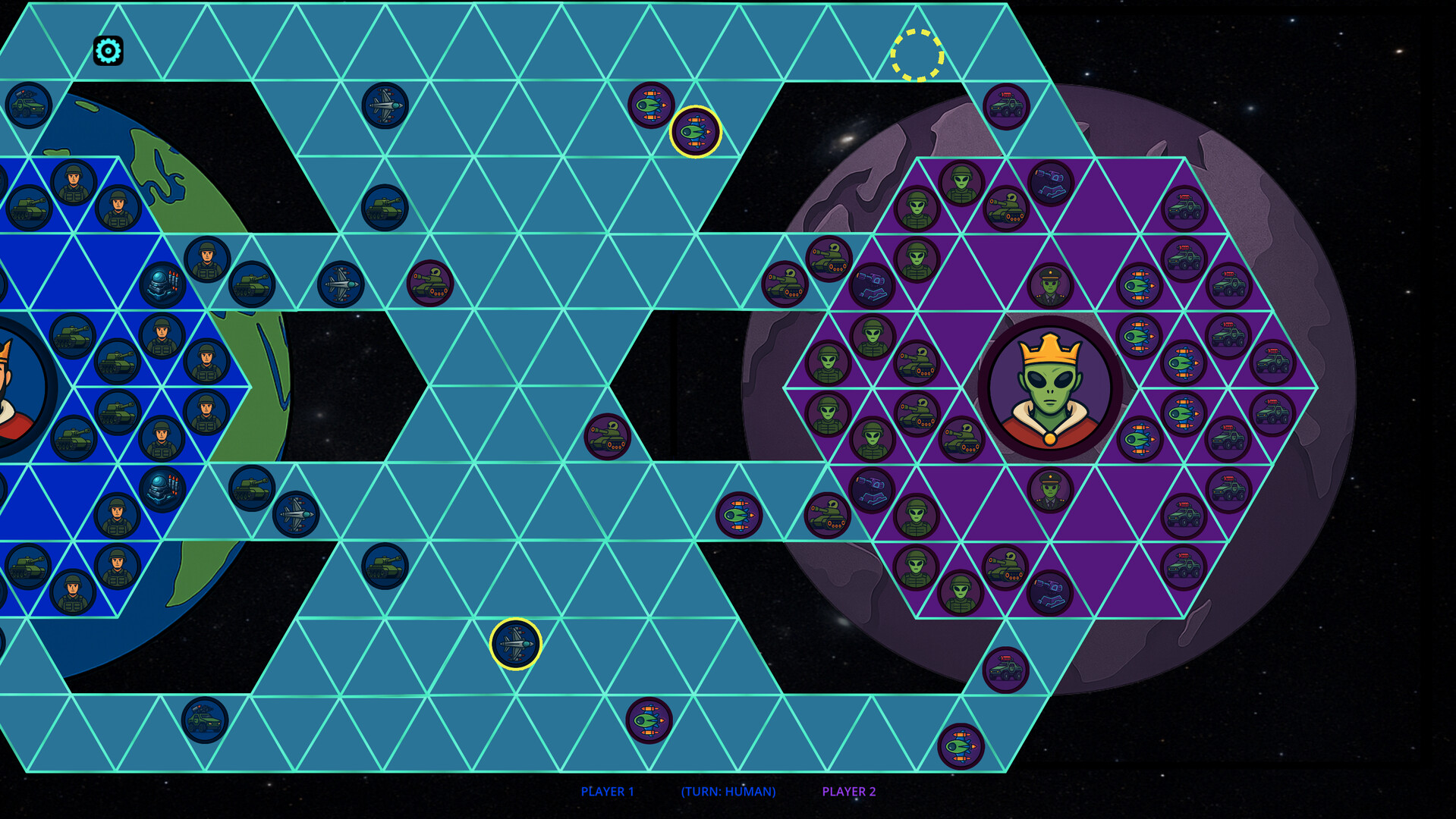 A turn-based tactical strategy game set in a sci-fi war between Humans and Aliens. Command units on a hex grid battlefield, control strategic zones, and outmaneuver your opponent in PvE or PvP combat.