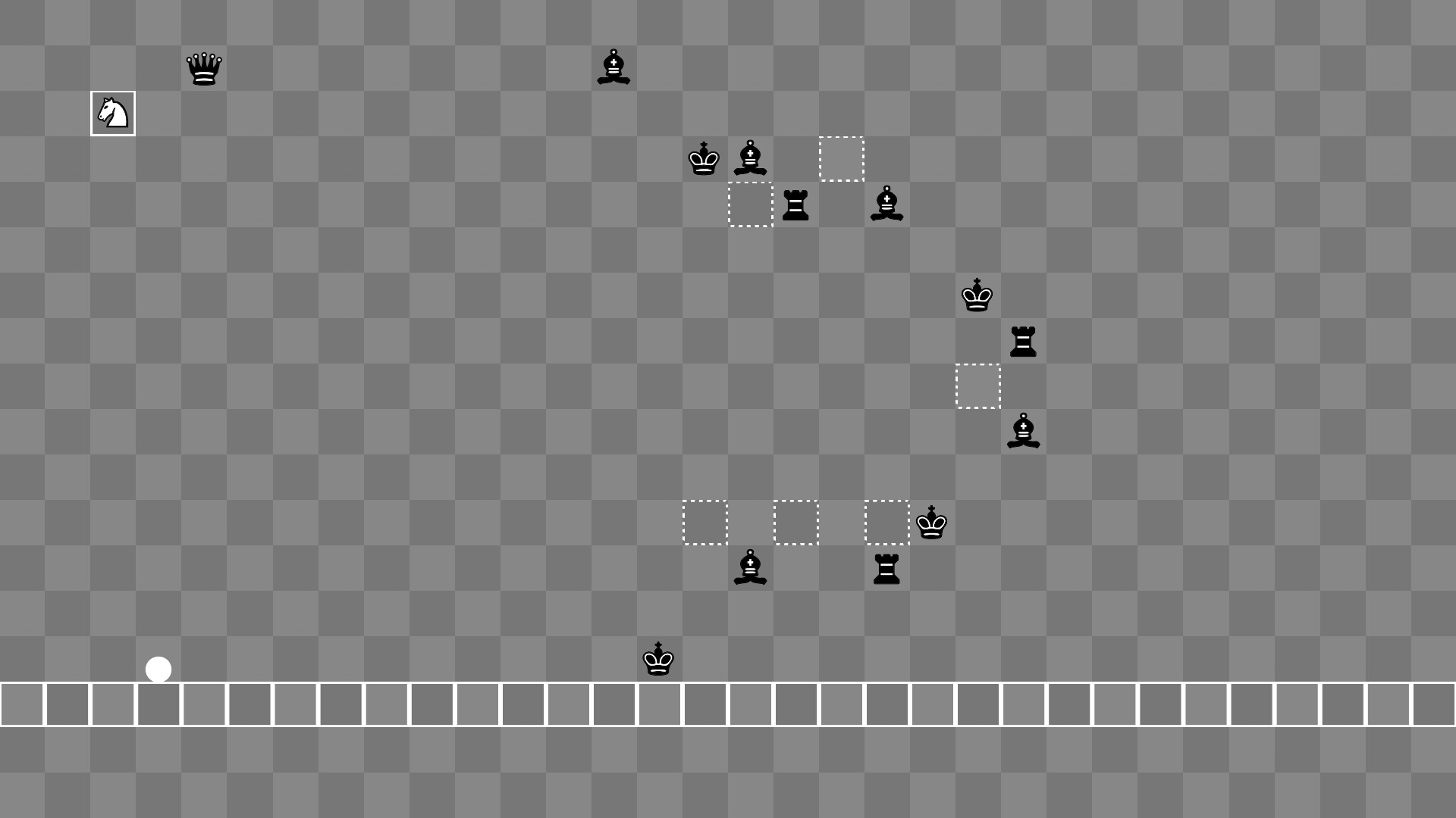 I Wanna Be With Knight is a platformer where chess pieces shape the battlefield. Ride the White Knight as a moving platform, outmaneuver the Black pieces, capture them, and fight your way through the puzzle-like levels.