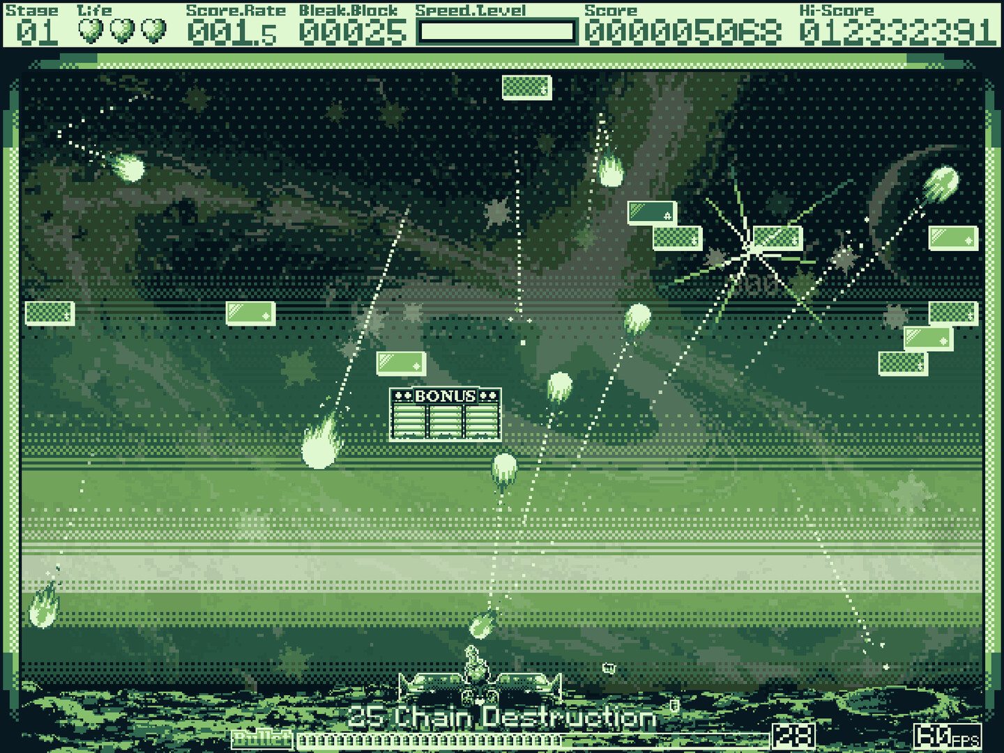 Control a meteor and smash through endless waves of blocks in this fast-paced arcade brick breaker. Chase high scores as the game gets faster and more chaotic.