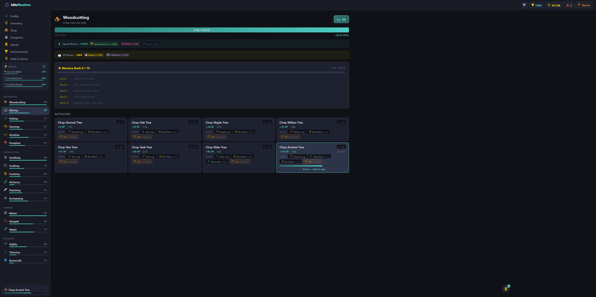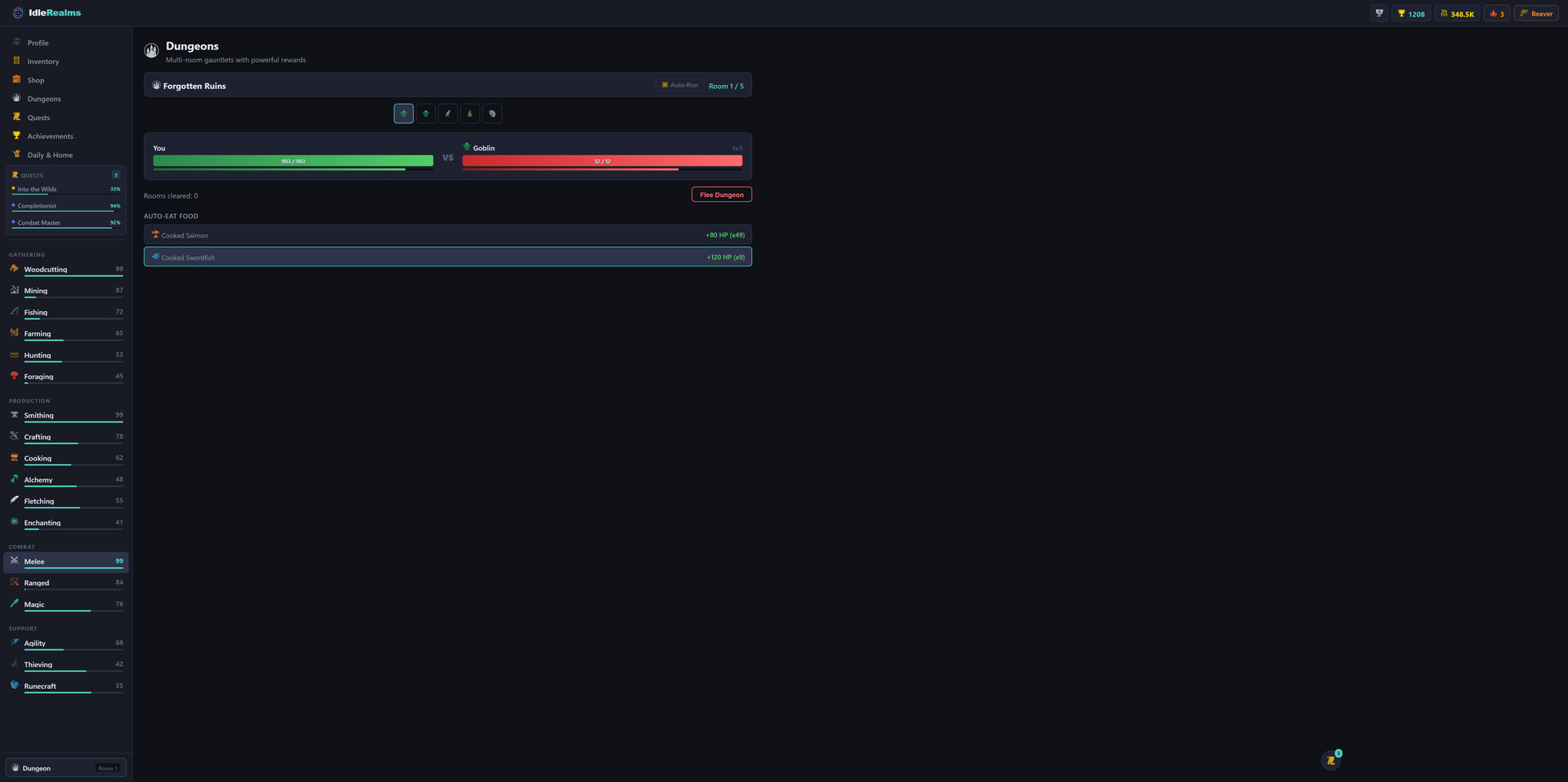 Train 18 skills, craft legendary gear, fight monsters across 6 realms, and conquer The Eternal Spire. A deep single-player idle RPG with full offline progression.