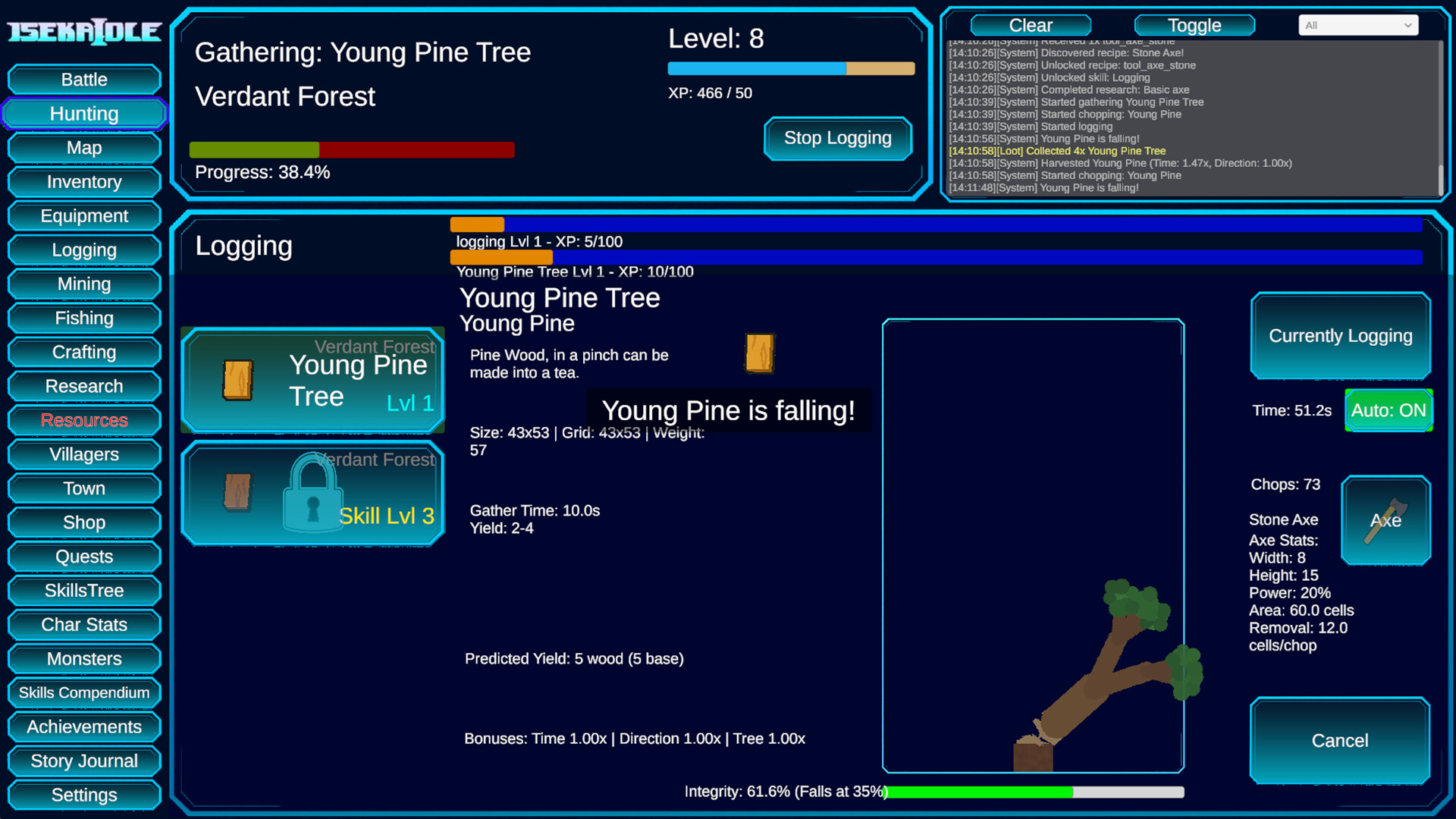A fantasy idle progression game inspired by deep skill-based systems. Train skills through use, conquer dungeons, manage your settlement, and optimize every system at your own pace, with no prestige resets and permanent progression.