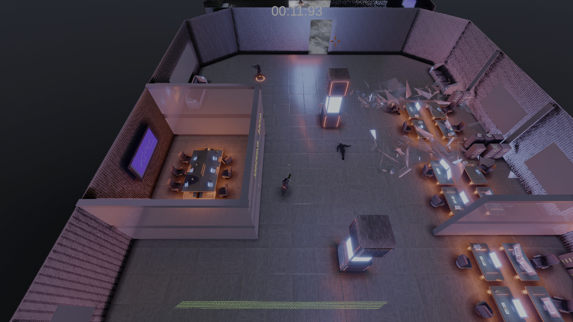 A frantic, 3D top-down shooter where the gameplay loop constantly evolves as you rip cybernetic implants from your defeated bosses.