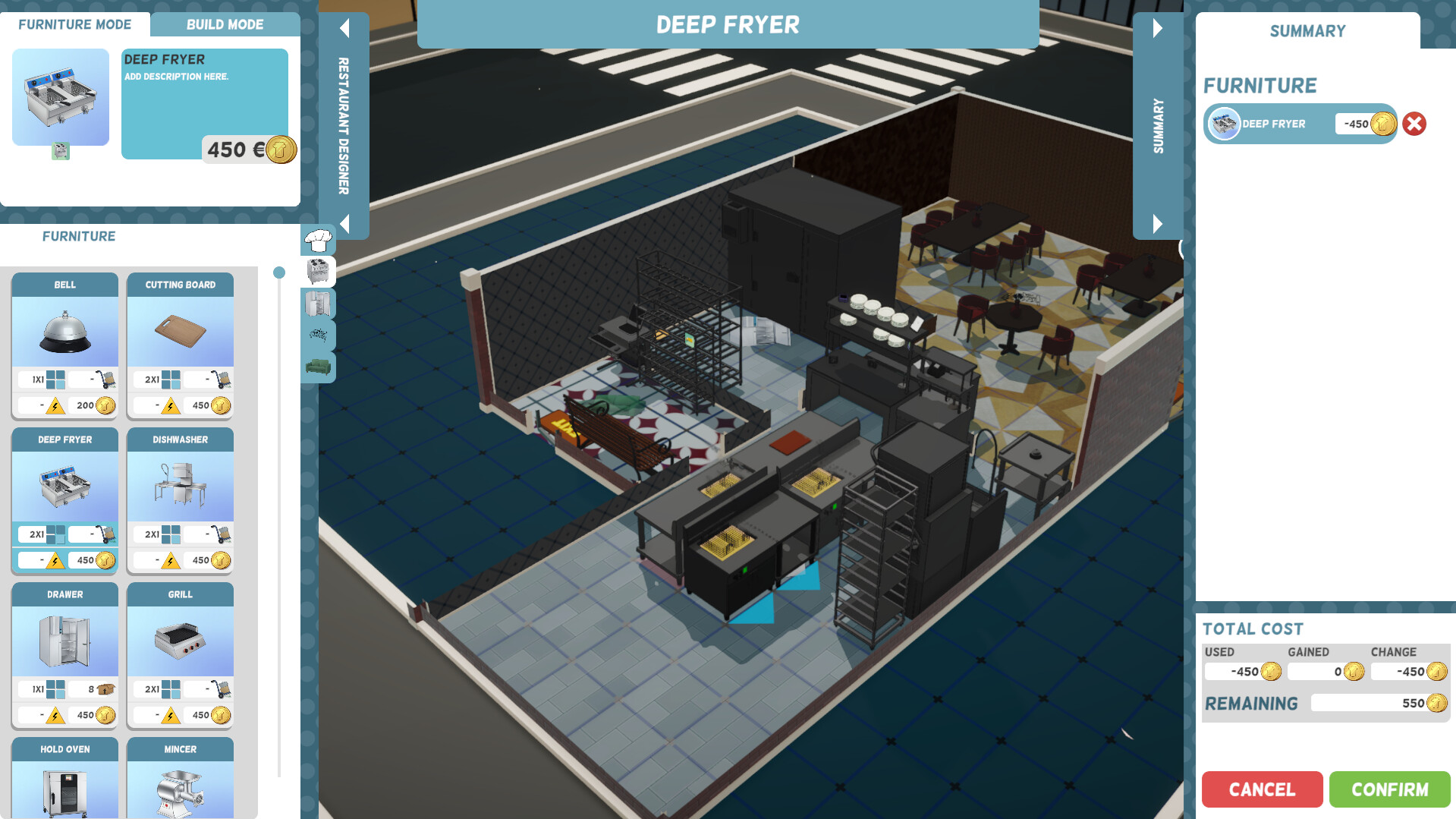 Kitchen Confidence is a restaurant management game, with a pinch of humour. The player will get to manage different kinds of kitchens, and to open the restaurant of their dreams.