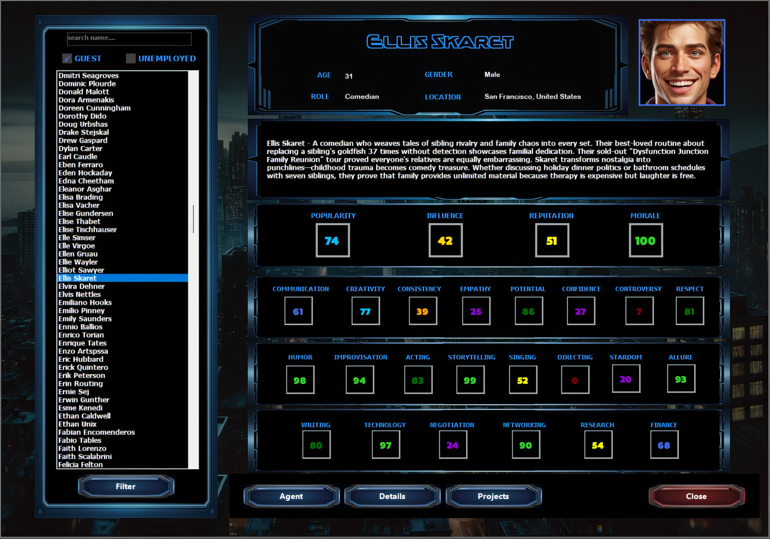 A strategic late‑night talk show management sim where you book guests, manage staff, craft episodes, negotiate network deals, and outsmart rival producers to dominate the ratings.