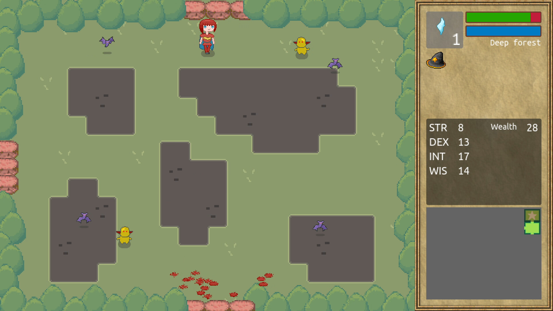 This is a top-down action-rpg where you're an anime character surviving and thriving in a randomly generated maze full of monsters, items and other cool stuff. As you crawl deeper into this dungeon, you will unlock more characters, spells, items, dungeon floors and other cool things.