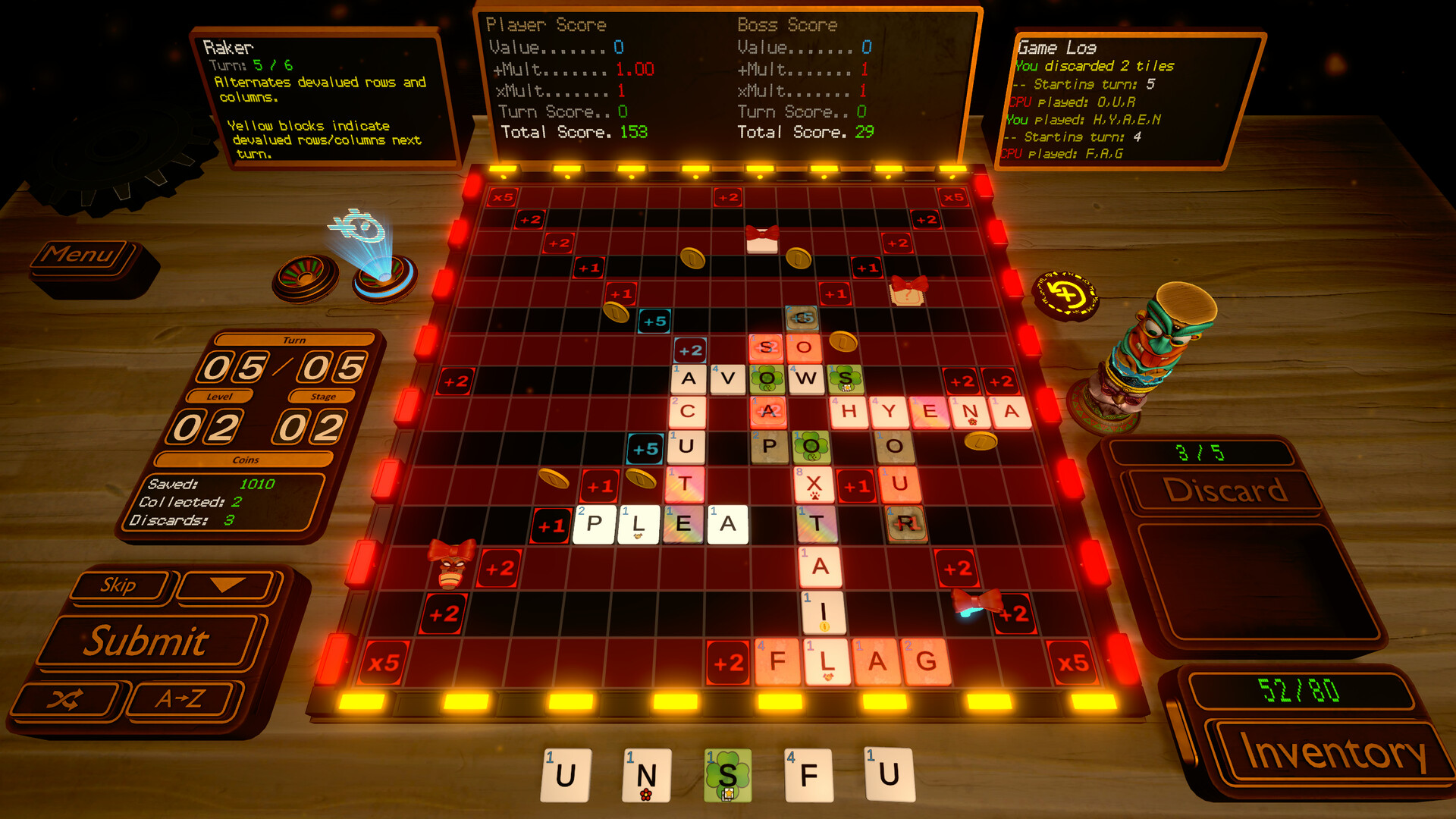 Letterally is a deck-building roguelike where you craft words and your deck of letter tiles. Build powerful synergies, collect game-breaking items, and outsmart rule-bending bosses in this turn-based strategic word game.