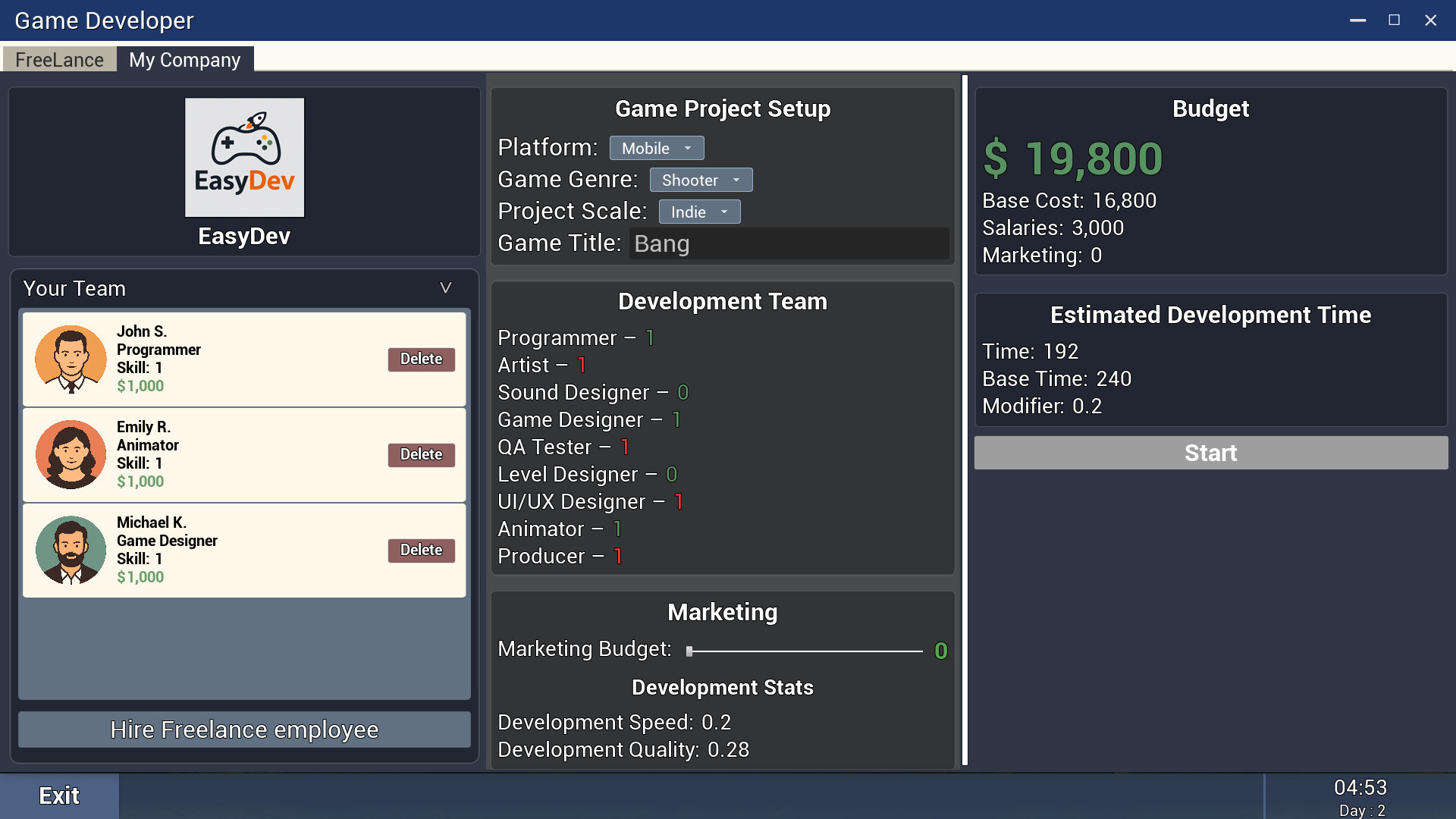 A digital life simulator. Work at your PC, earn money, pay bills, invest, build companies, or take risky paths. Money brings power, but risk leads to consequences - there are no safe choices.