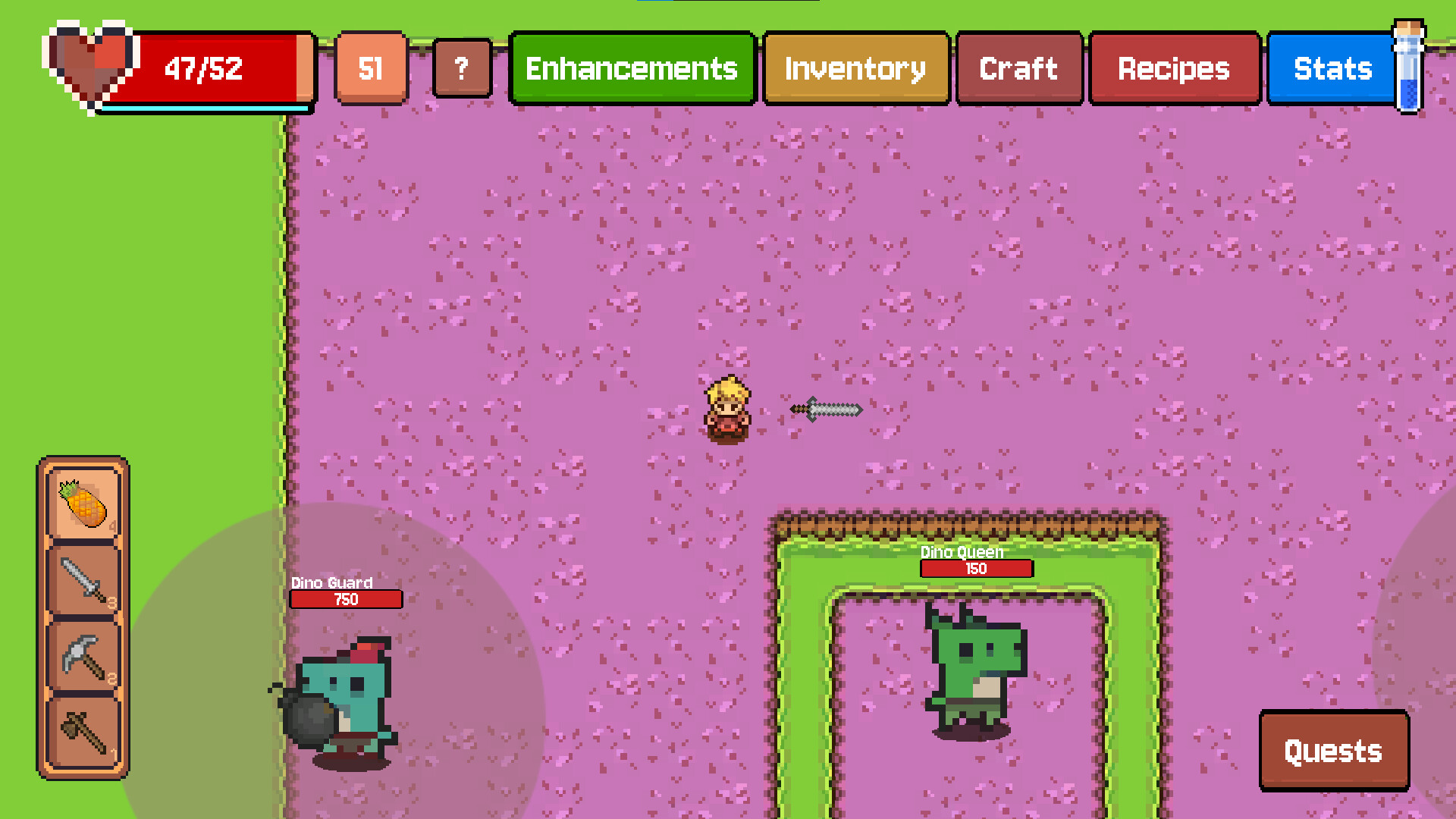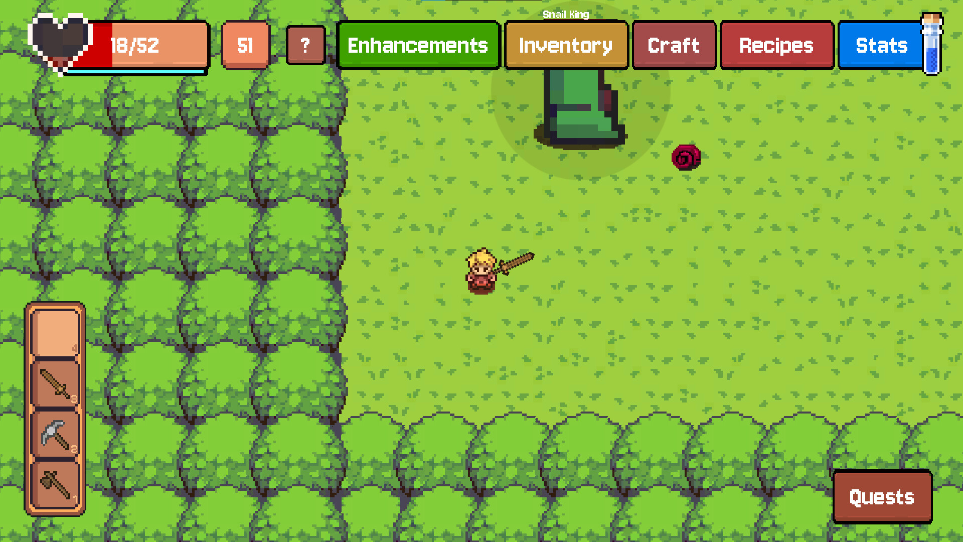 Little Stronger is a chill top-down pixel action RPG where you collect resources, craft better gear, and level up step by step. Explore colorful areas and challenge increasingly powerful bosses as you grow stronger with every fight.