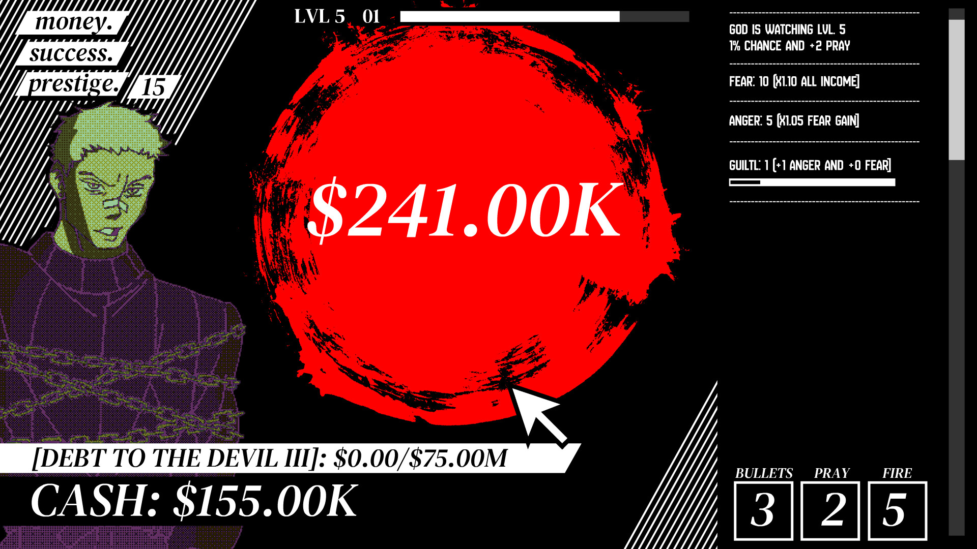 Meaningless Random Numbers is an Incremental Horror Game about earning cash through Random Number Generators but be cautious, God is Watching.
