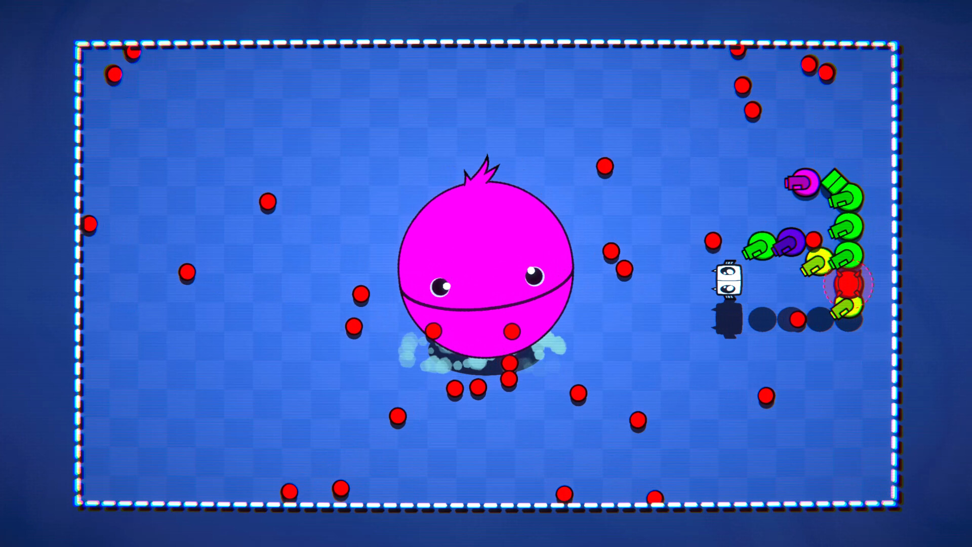 Survive hordes of monsters and bosses while collecting cards that add unique ability upgrades to the body of a small snake Mechaconda.