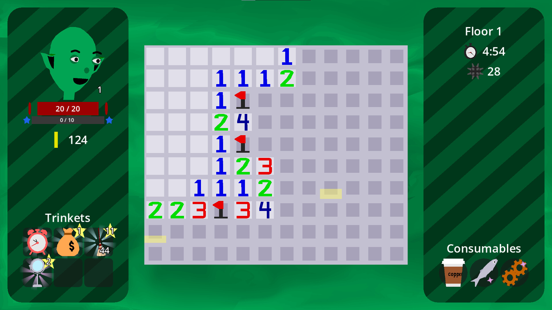 Minesweeper, but a roguelike. Solve classic minesweeper puzzles with the help of many unique items. Create explosive combos, fight bosses, unlock characters, and overcome Michael Sweeper's Minefield.