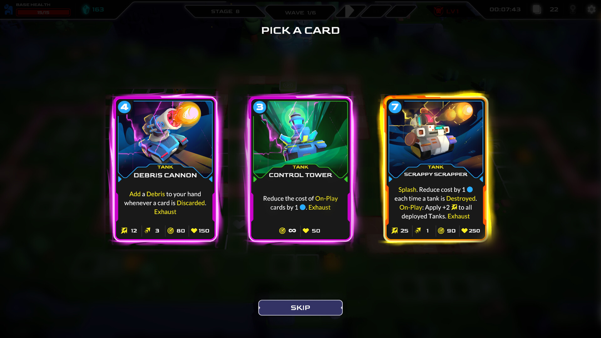 Mini Tank Mayhem is a roguelike deck-building tower defense game where you command a powerful mini-tank to repel waves of alien invaders. Craft your very own deck, deploy strategic defenses, and unleash devastating combos to protect Earth from pesky aliens!