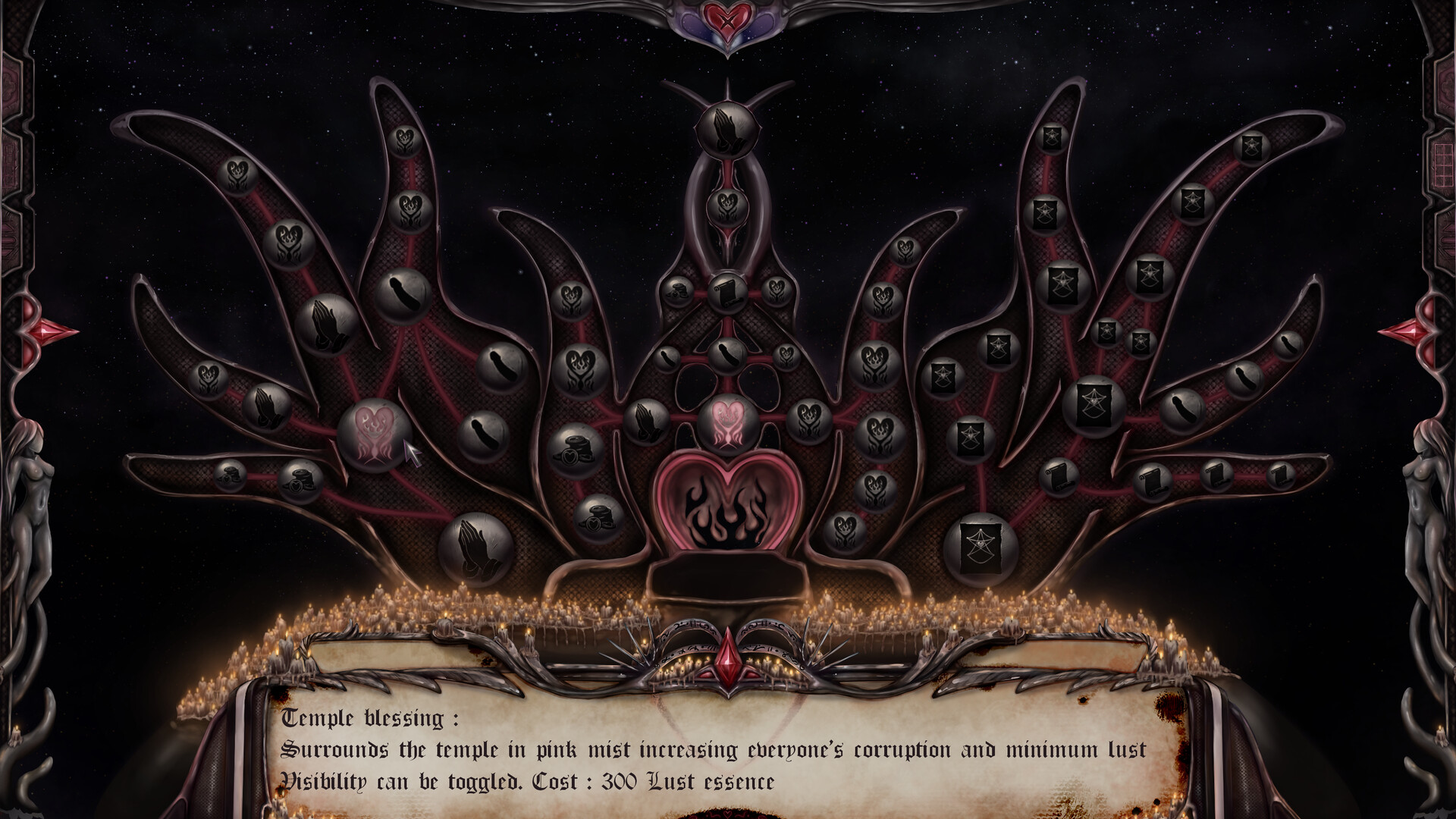 A cohabitation / temple management / dating sim game Corrupt and seduce your fellow nuns as you fall into depravity yourself. Cast spells, manage your temple and upgrade your abilities. “cleanse” the faithful in the confession booth, get frisky with the other nuns, and give yourself to the goddess